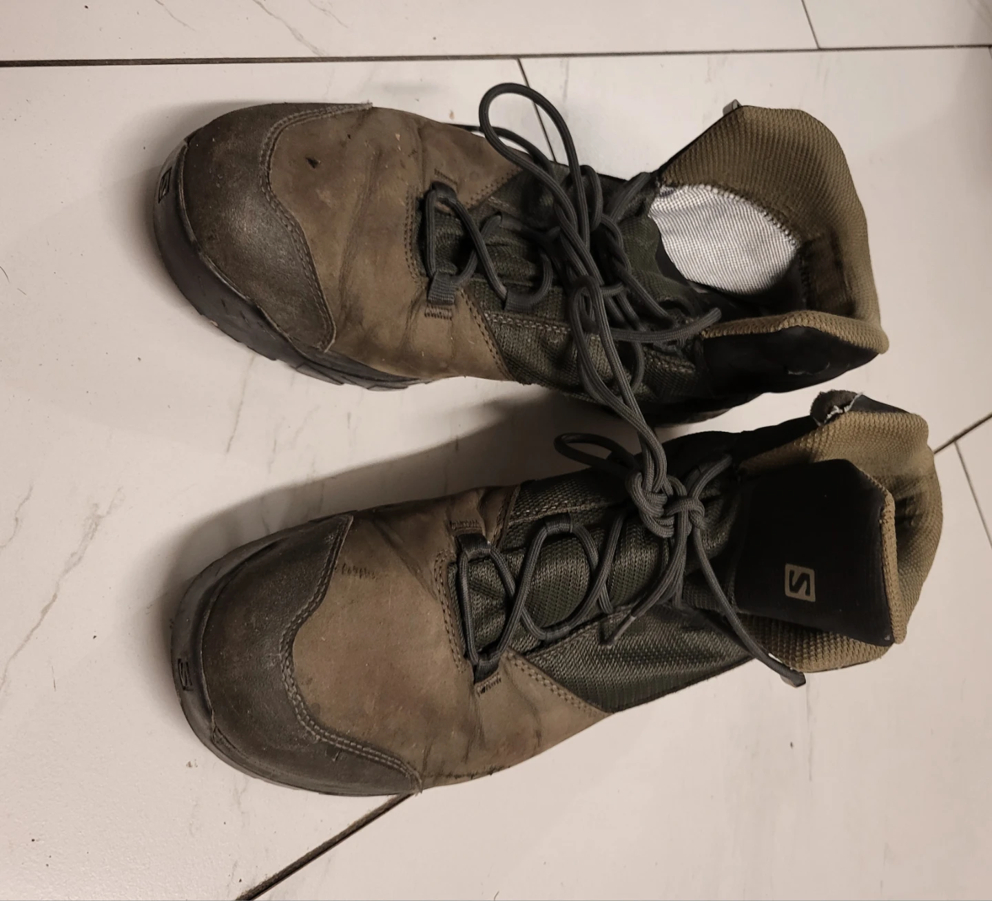 Selling a pair of Salomon hiking boots in used condition. They are size 10.5 US, 45 1/3 EUR, and 29 CM. Good for hiking!