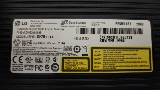 Selling an external LG Super Multi DVD Rewriter, model GE20 LU10. This is a used DVD rewriter manufactured in February 2009. Comes with all cables to get it running and connect it to a source. I plugged it in, and the disc mechanism works, but I do not have a use case for it, nor can I test the functionality. I never used it, but it wasn't mine forever. I can't verify if someone else has, but from the outside, there are no marks or scratches on the black plastic which is a good indicator that no one has used it. Functionalities: As an external drive, it connects to a computer via an interface (likely USB, based on similar models) to transfer data. Data Archiving: it supports M-DISC technology, which provides superior reliability for long-term data storage and archiving. It can read data from CDs and DVDs, allowing people to play movies, music, or access stored files through compatible software on their computer. If you want more pictures, don't fret, I'll be glad to send you some more if you are interested.