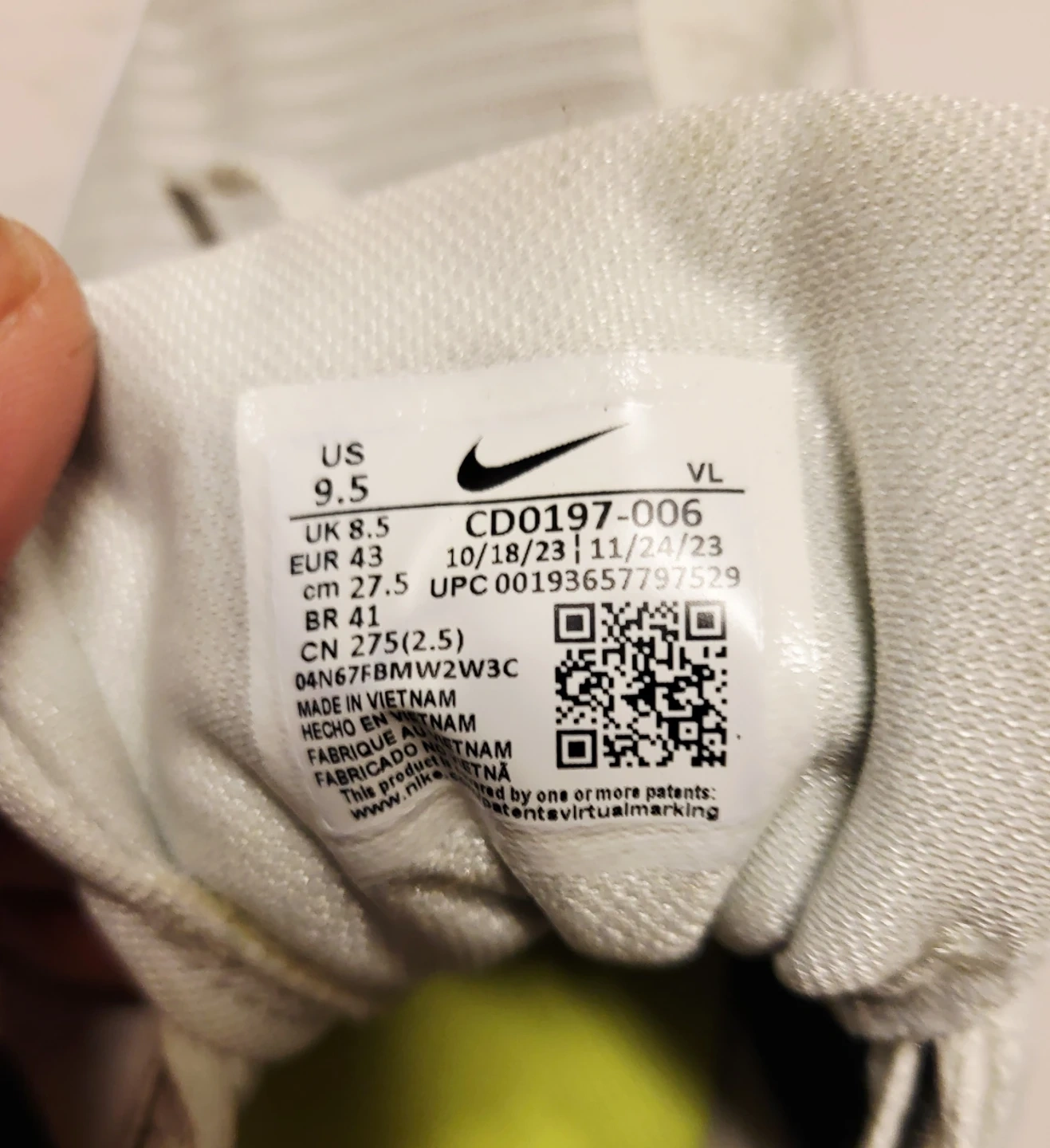 Selling a pair of Nike running shoes, model number CD0197-006 in US size 9.5. They are in used condition but still have lots of life left! Perfect for running or everyday wear