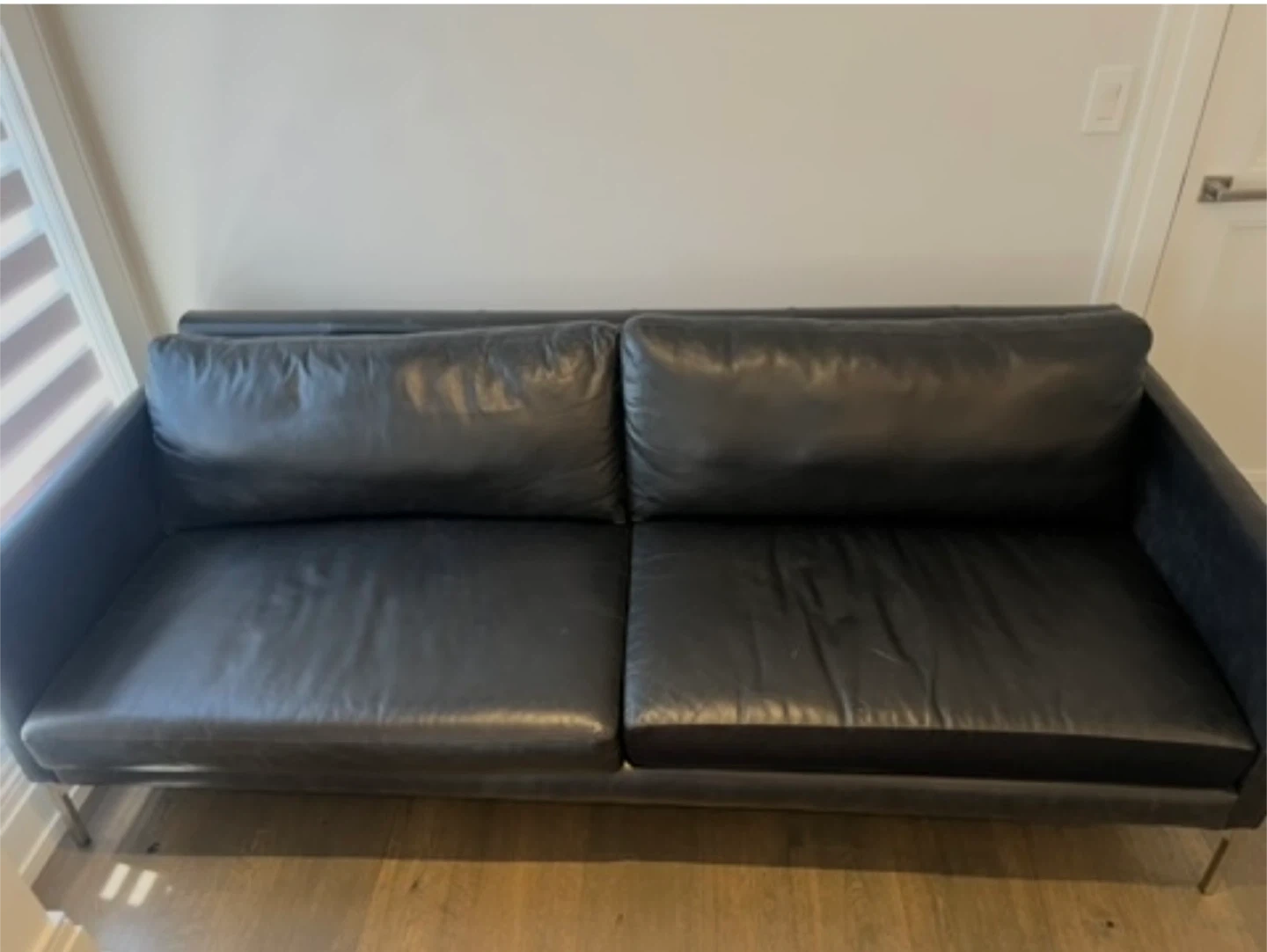 Selling a black leather sofa that would look great in any living room or den. The sofa is in good condition and has a sleek, modern design. It's perfect for lounging and relaxing after a long day. The leather is soft and supple, adding a touch of luxury to your home.