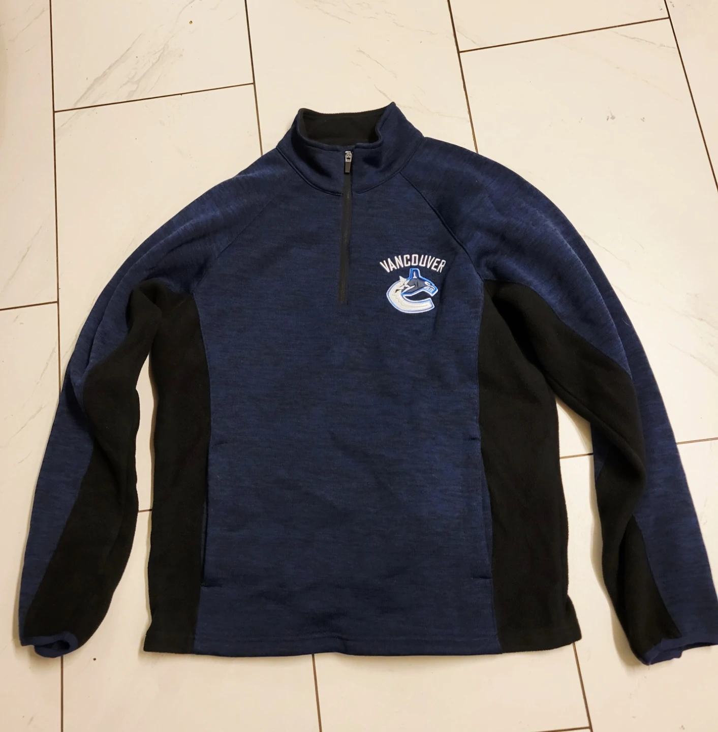 Selling a Vancouver Canucks NHL pullover by Gill Sports by Carl Banks. It's a size small and in great condition! The colours are blue and black.