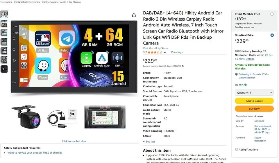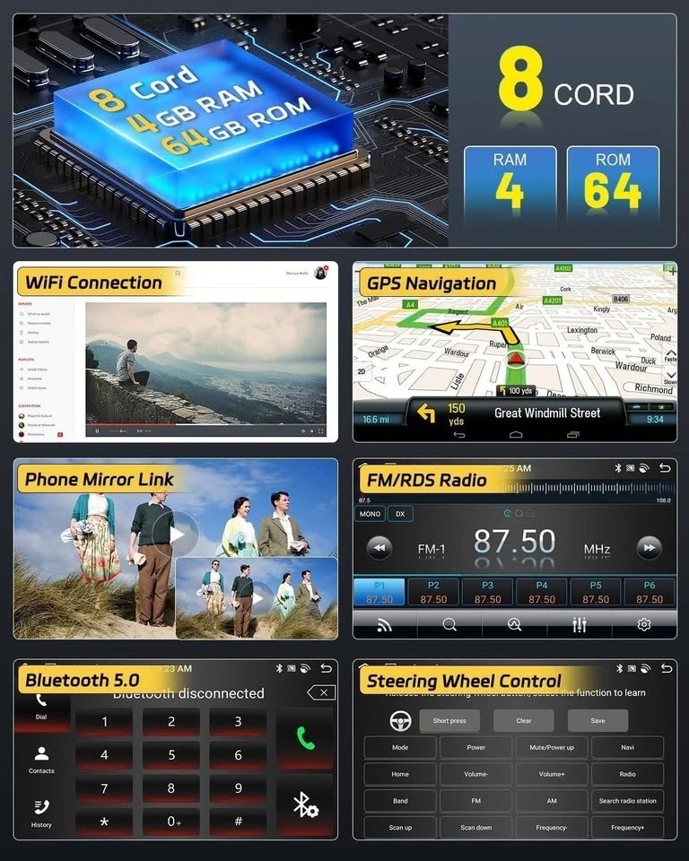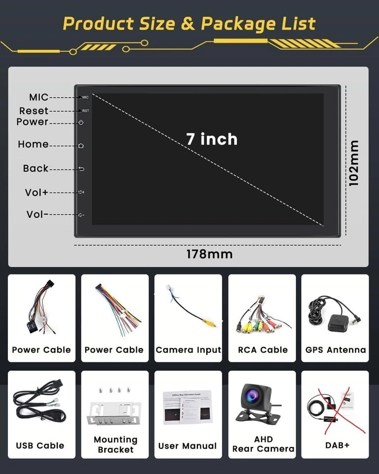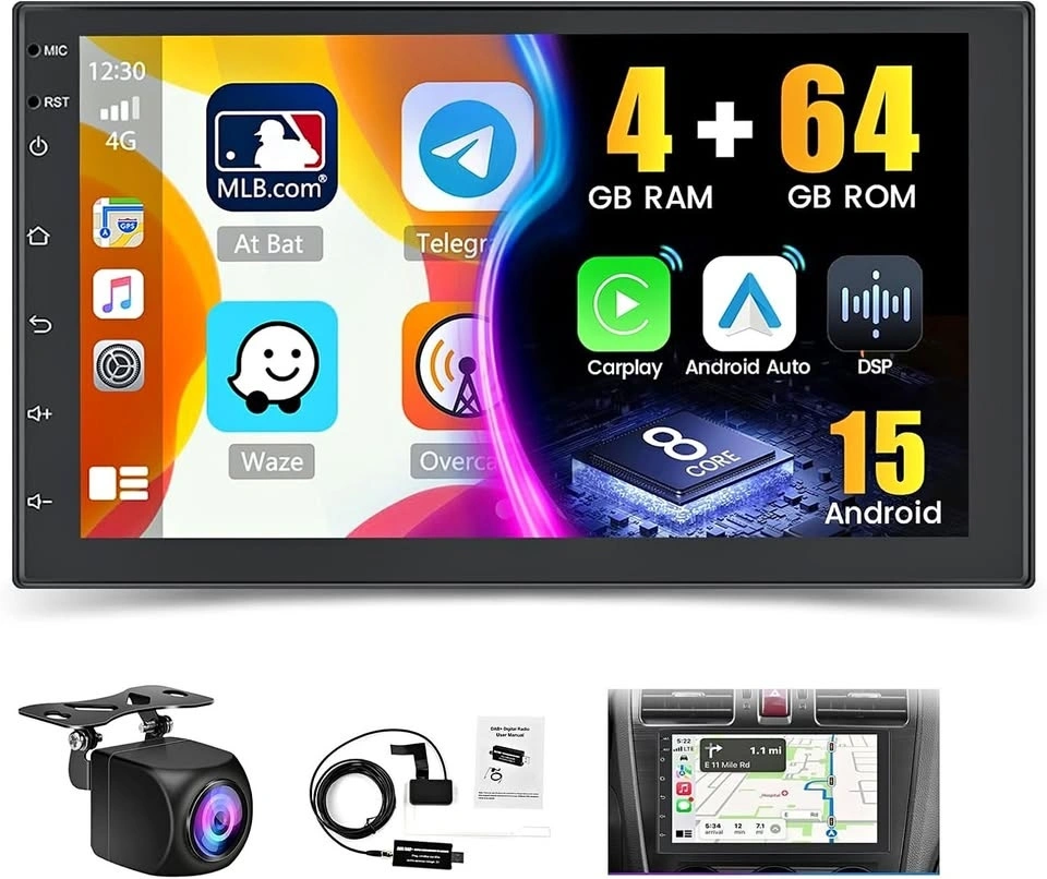 DAB/DAB+ [4+64G] Hikity Android Car Radio 2 Din Wireless Carplay Radio Android Auto Wireless, 7 Inch Touch Screen Car Radio Bluetooth with Mirror Link Gps Wifi DSP Rds Fm Backup Camera