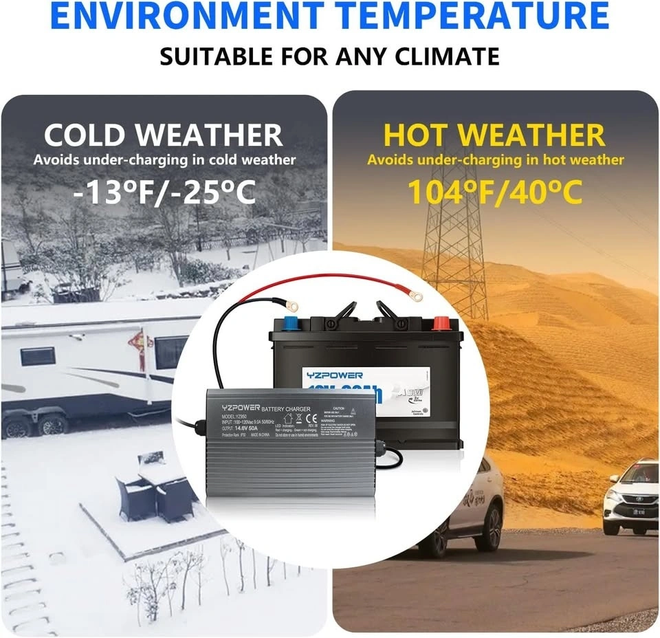 YZPOWER 14.6V 50A LifePO4 Battery Charger for Marine Boat RV Lawn Motor Motorcycle Golf Cart,12v Deep Cycle Rechargeable Batteries Charger AC-DC Charger