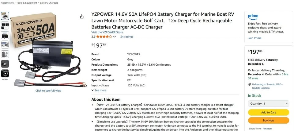 YZPOWER 14.6V 50A LifePO4 Battery Charger