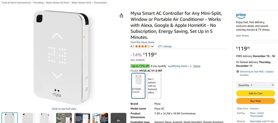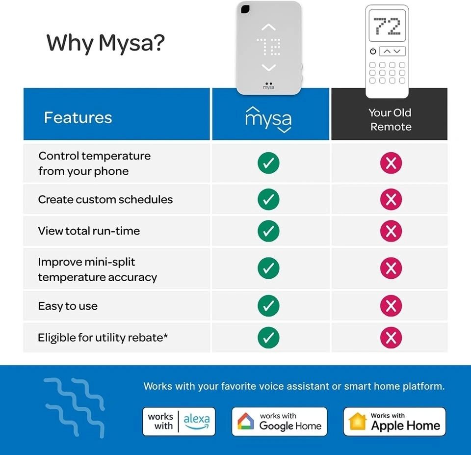 Mysa Smart AC Controller for Any Mini-Split, Window or Portable Air Conditioner - Works with Alexa, Google & Apple HomeKit - No Subscription, Energy Saving, Set Up in 5 Minutes.