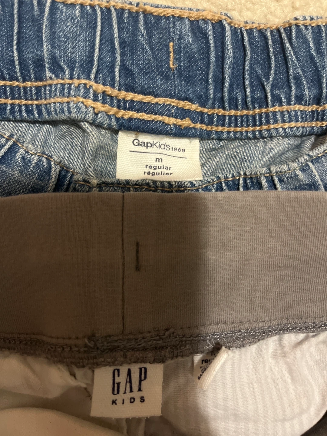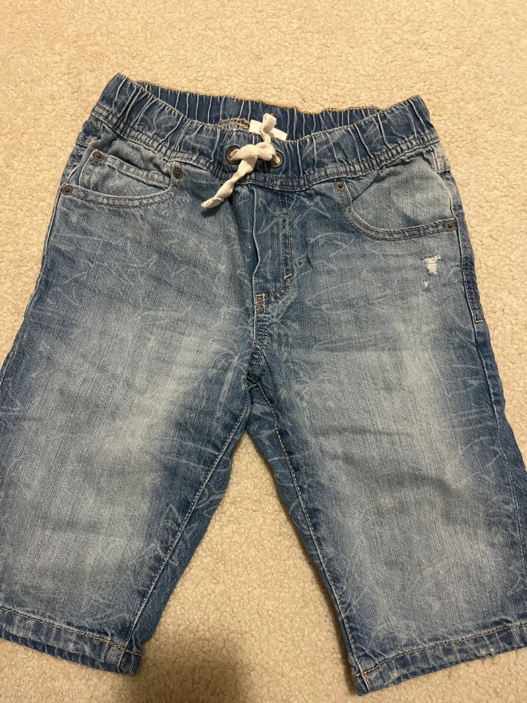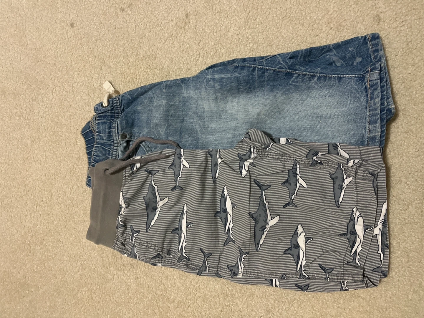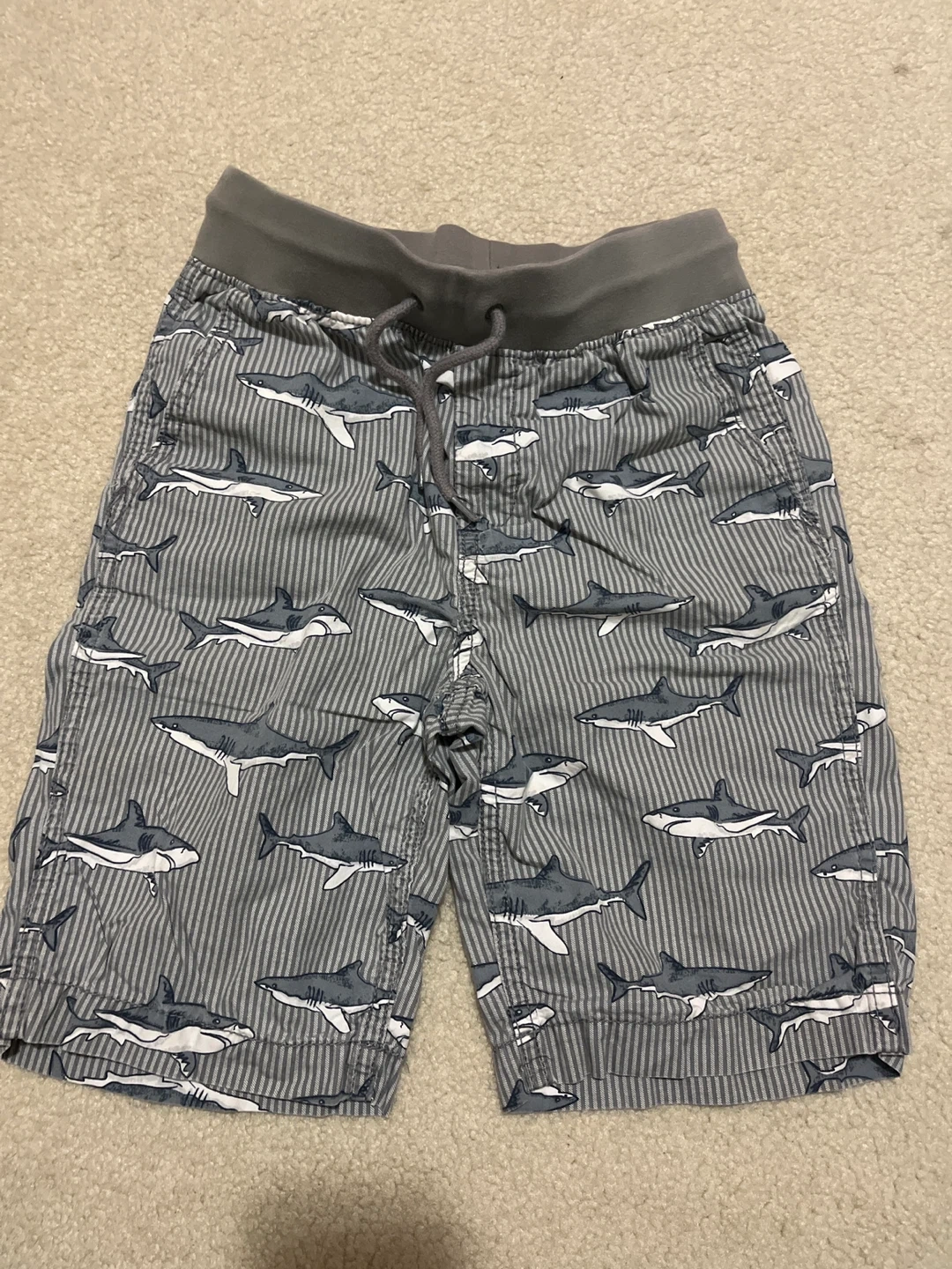 Two pairs of Gap Kids shorts! One pair is a light wash denim with shark and the other is a grey and white shark print. Both are regular size M.