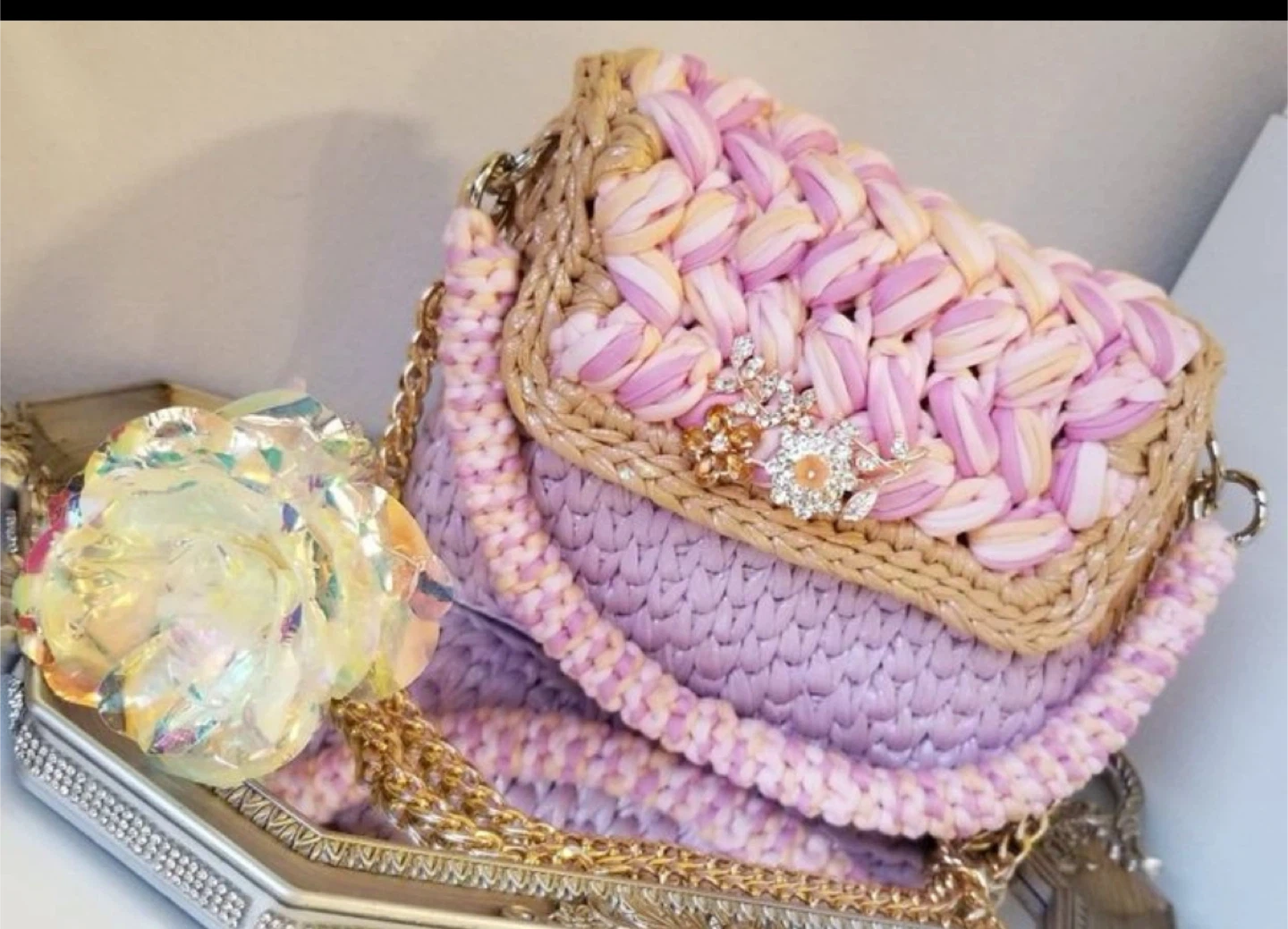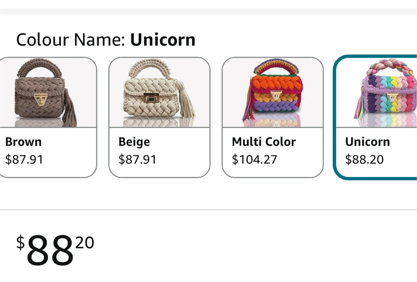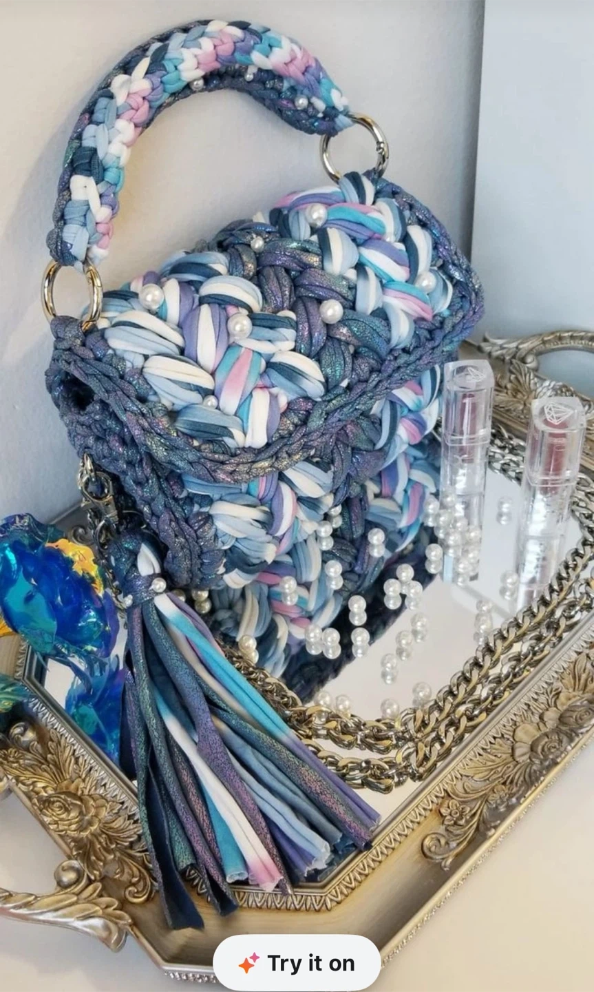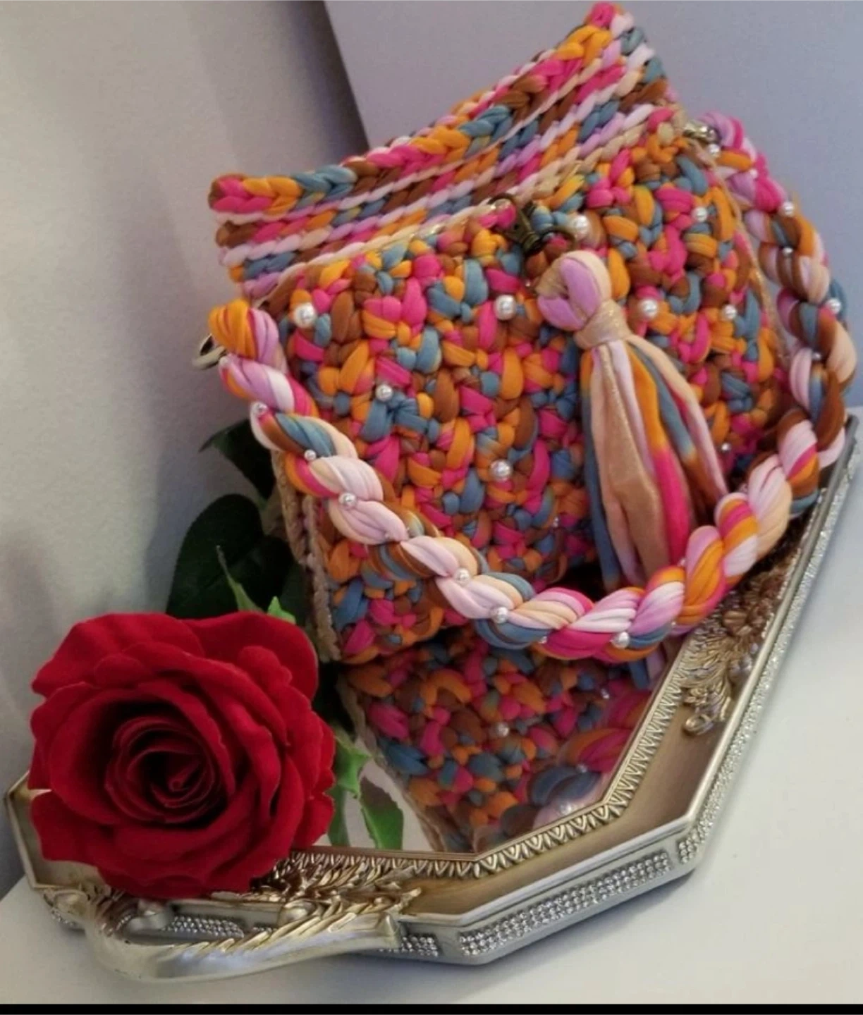 Check out this unique handmade woven bag! It features a beautiful unicorn colour scheme and a stylish design. Originally bought for $88.20, it's a real eye-catcher!