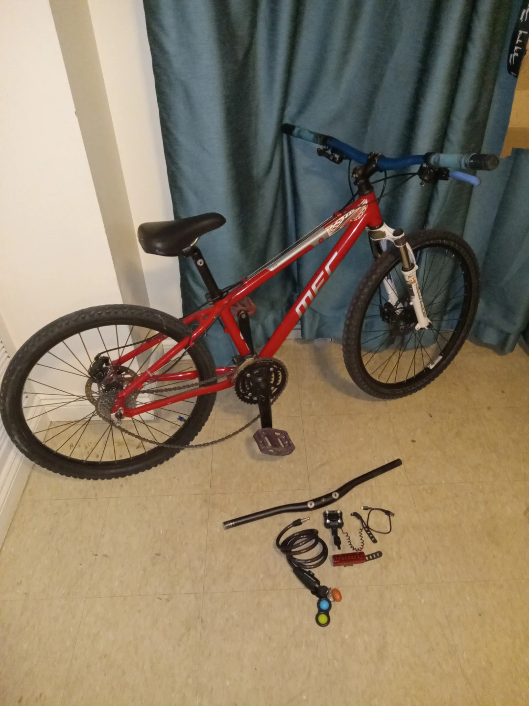 Selling my MTB bike. It's in good condition. Lots of thing are modified just needs a new back Derailleur and shifter. comes with accessories to. like horn light handlebar locks.