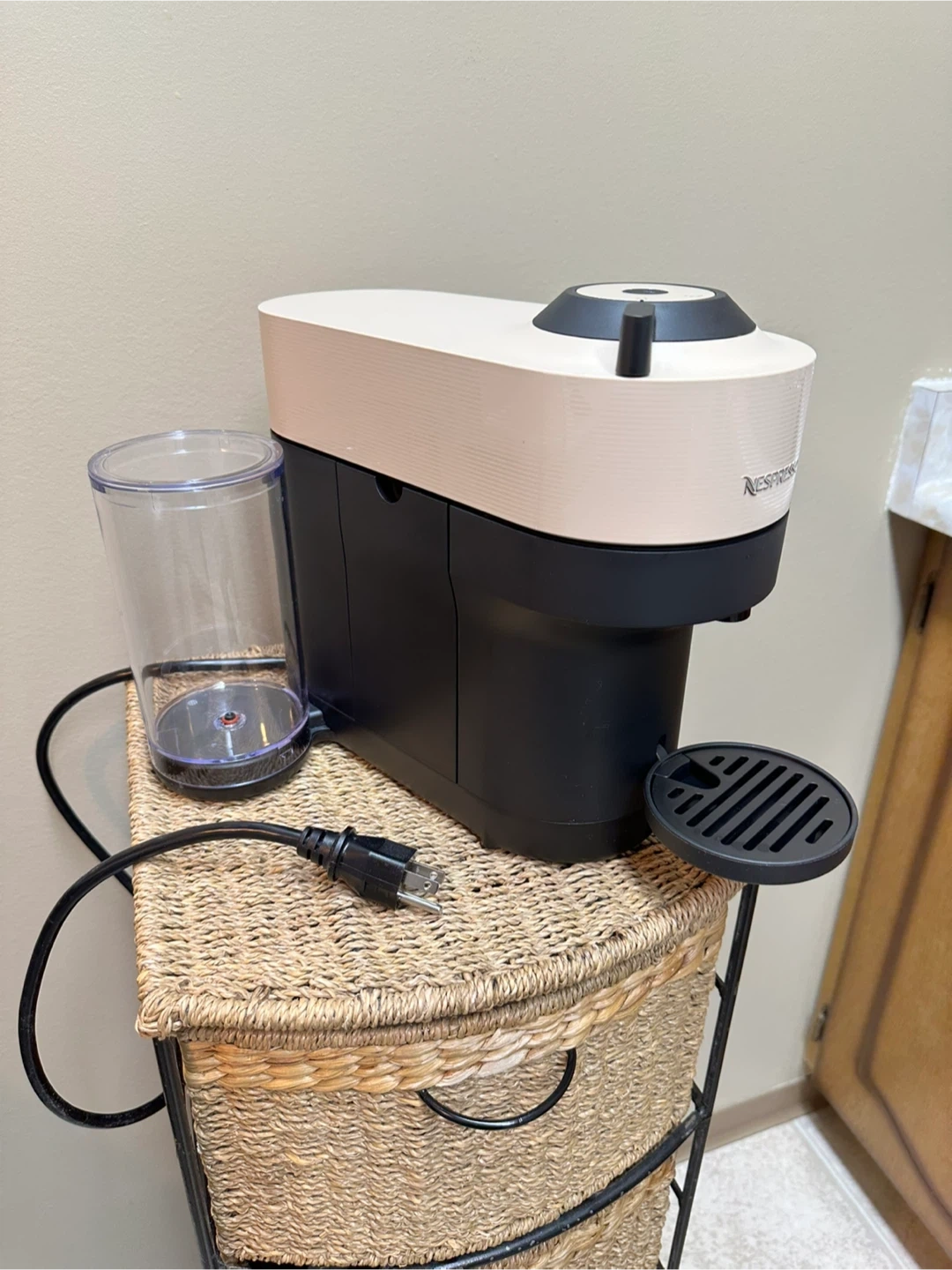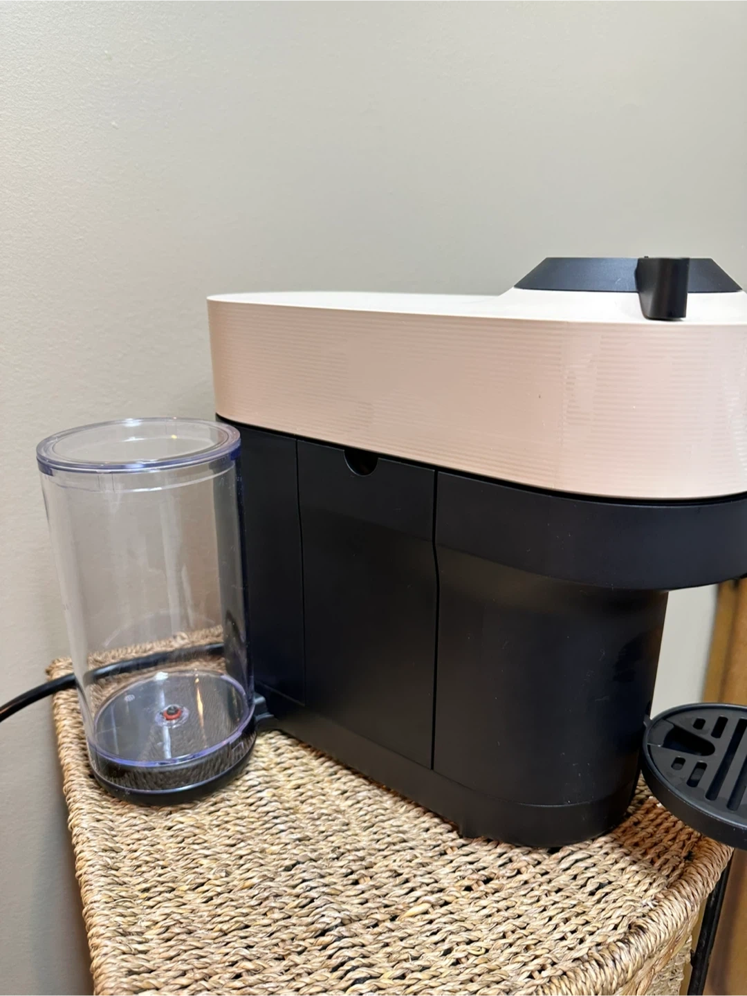 Honestly bought a few months ago…used only a few times. I found out I don’t like strong coffee. I paid much more. This is a beige colour so will suit many kitchens. Absolutely nothing wrong with it, in perfect condition. I will include 52 assorted coffee pods.