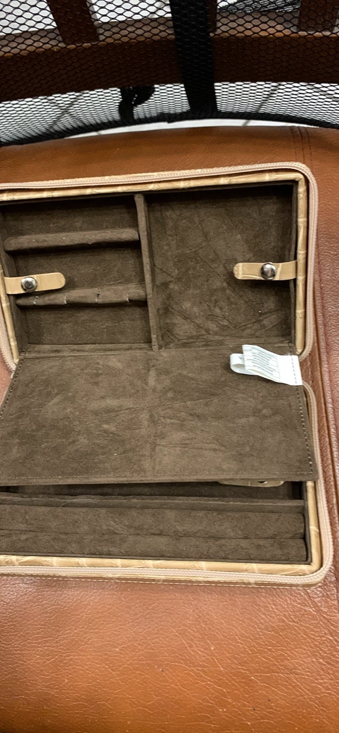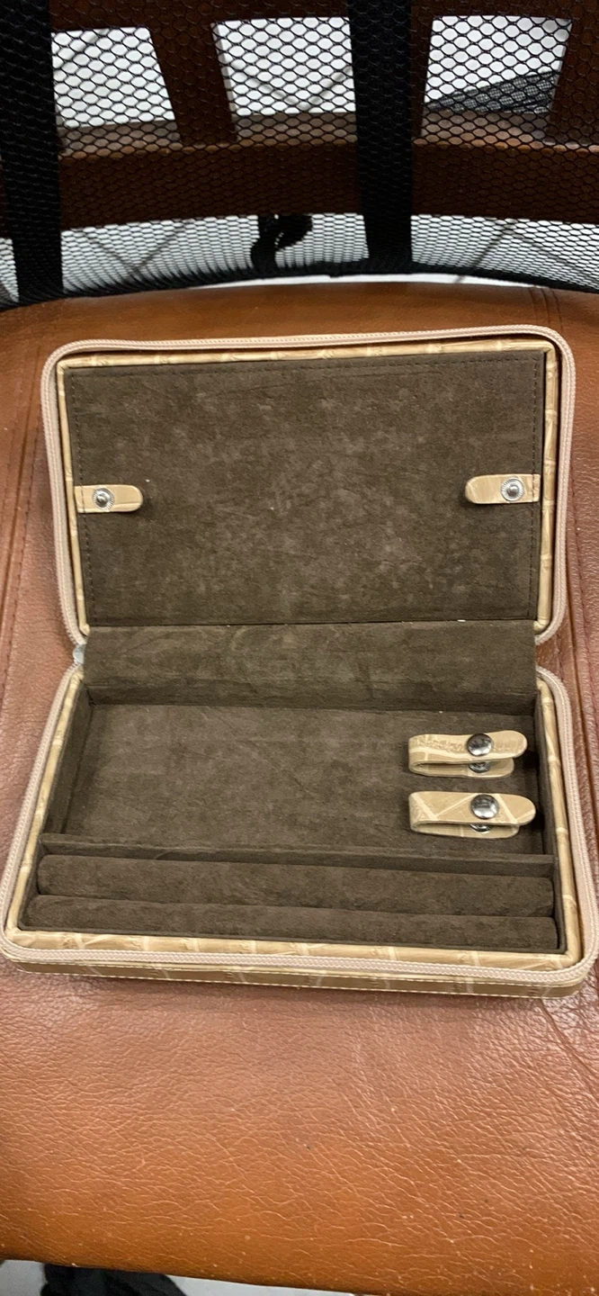Here's a handy jewelry travel case! It's perfect for keeping your precious items safe and organized while you're on the go. The case has a soft interior lining to prevent scratches and compartments for different types of jewelry