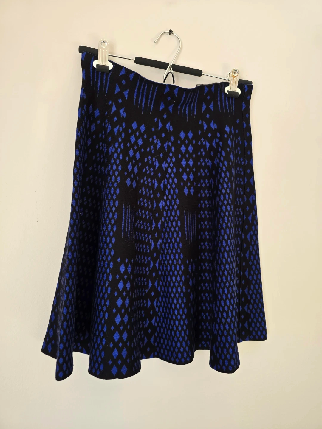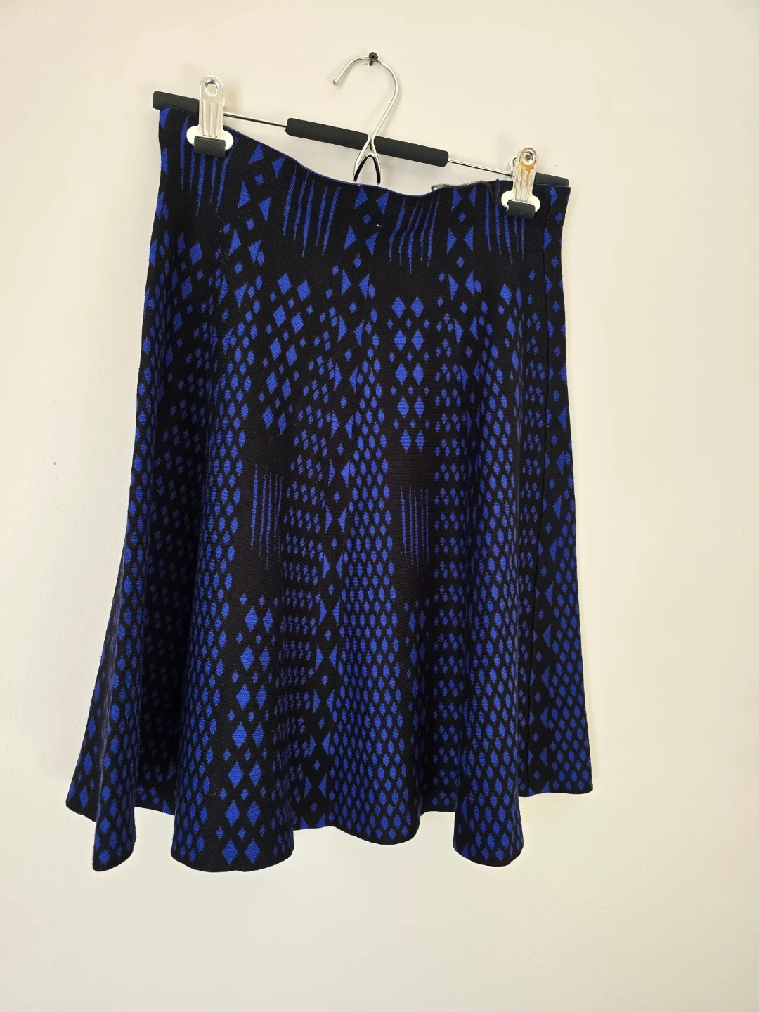Office Blue & Black Patterned Skirt, size M, exelent conditions