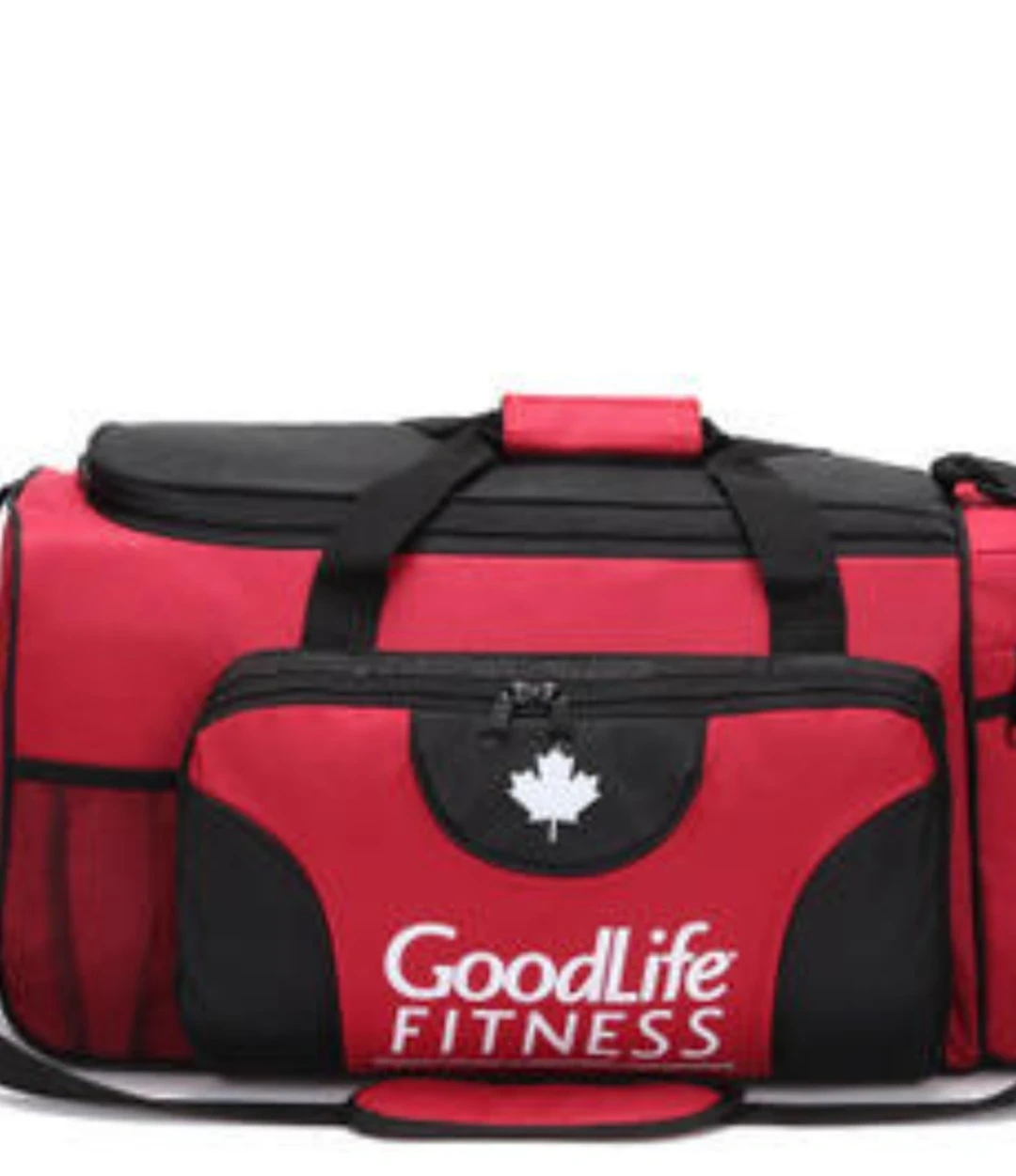 Selling a GoodLife Fitness gym bag in red and black! It's perfect for carrying all your workout gear to the gym or for weekend trips. It's in great condition and ready for a new owner