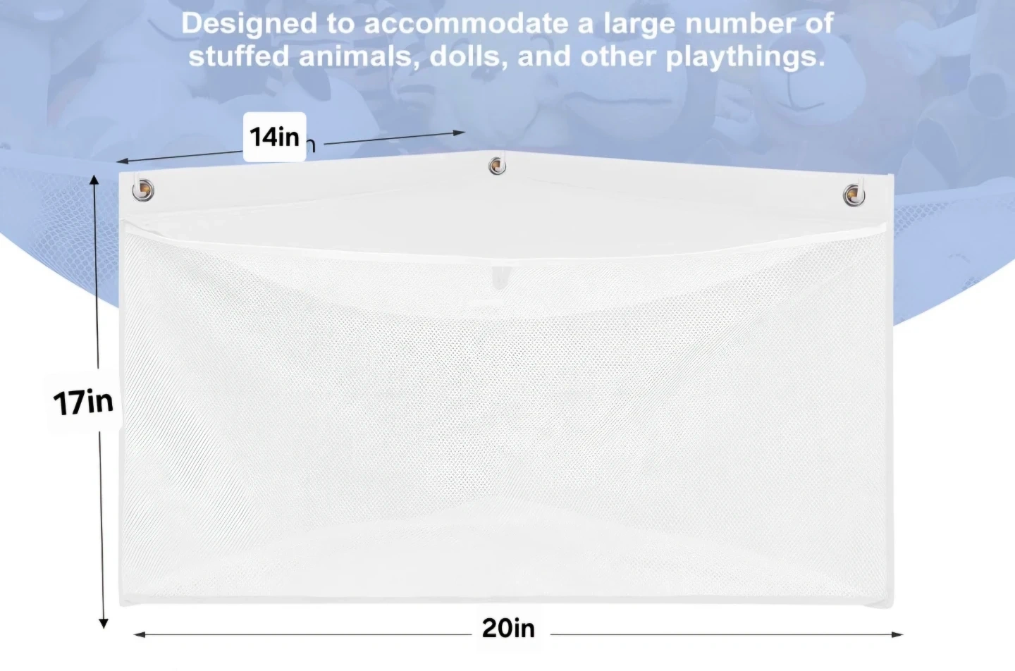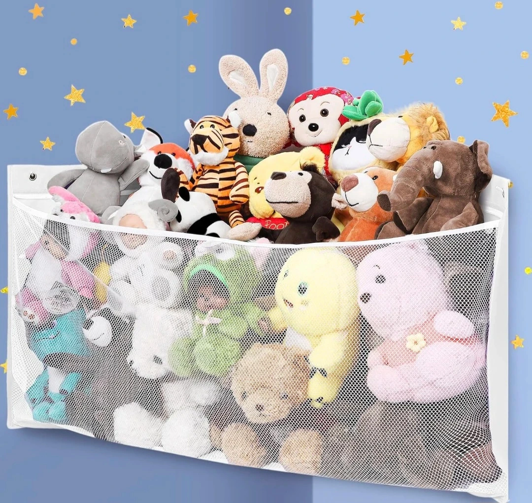 Declutter your space with this handy net organizer! It's designed to hold a large number of playthings. Perfect for keeping your little one's room tidy and organized