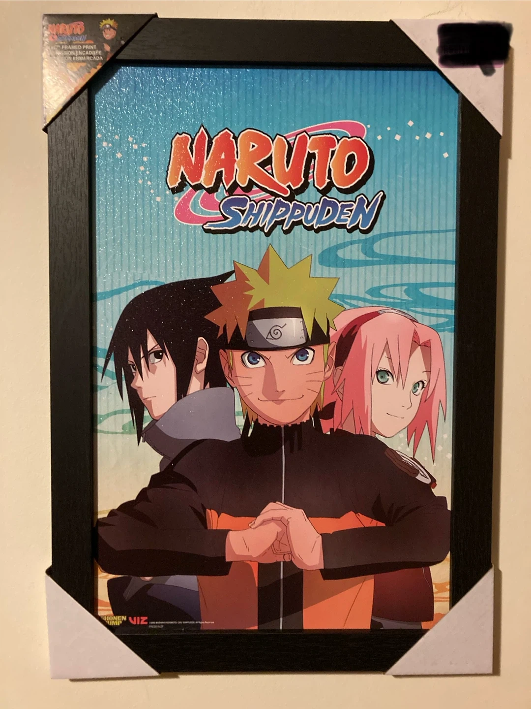 Selling a brand new, framed print of Naruto Shippuden! It's an 11x17 inch print, ready to hang and brighten up any room. The frame is included and it's in perfect condition since it's never been used