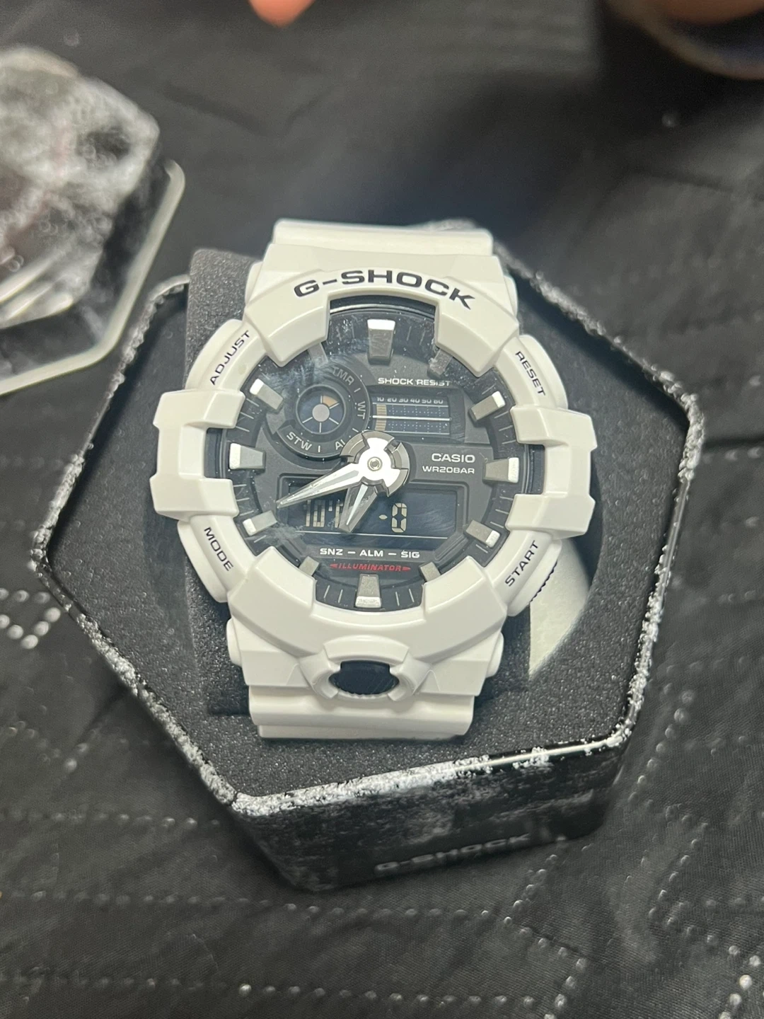 Selling a G-Shock watch in white! It's in great condition and comes with the original box. This model is a WR20BAR, known for its shock resistance and durability. Perfect for everyday wear or outdoor activities!