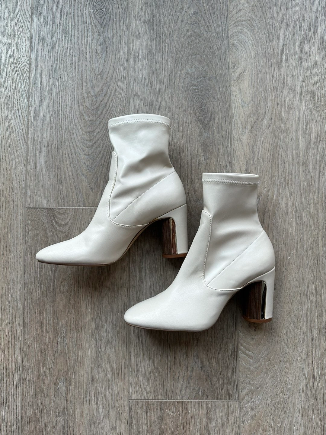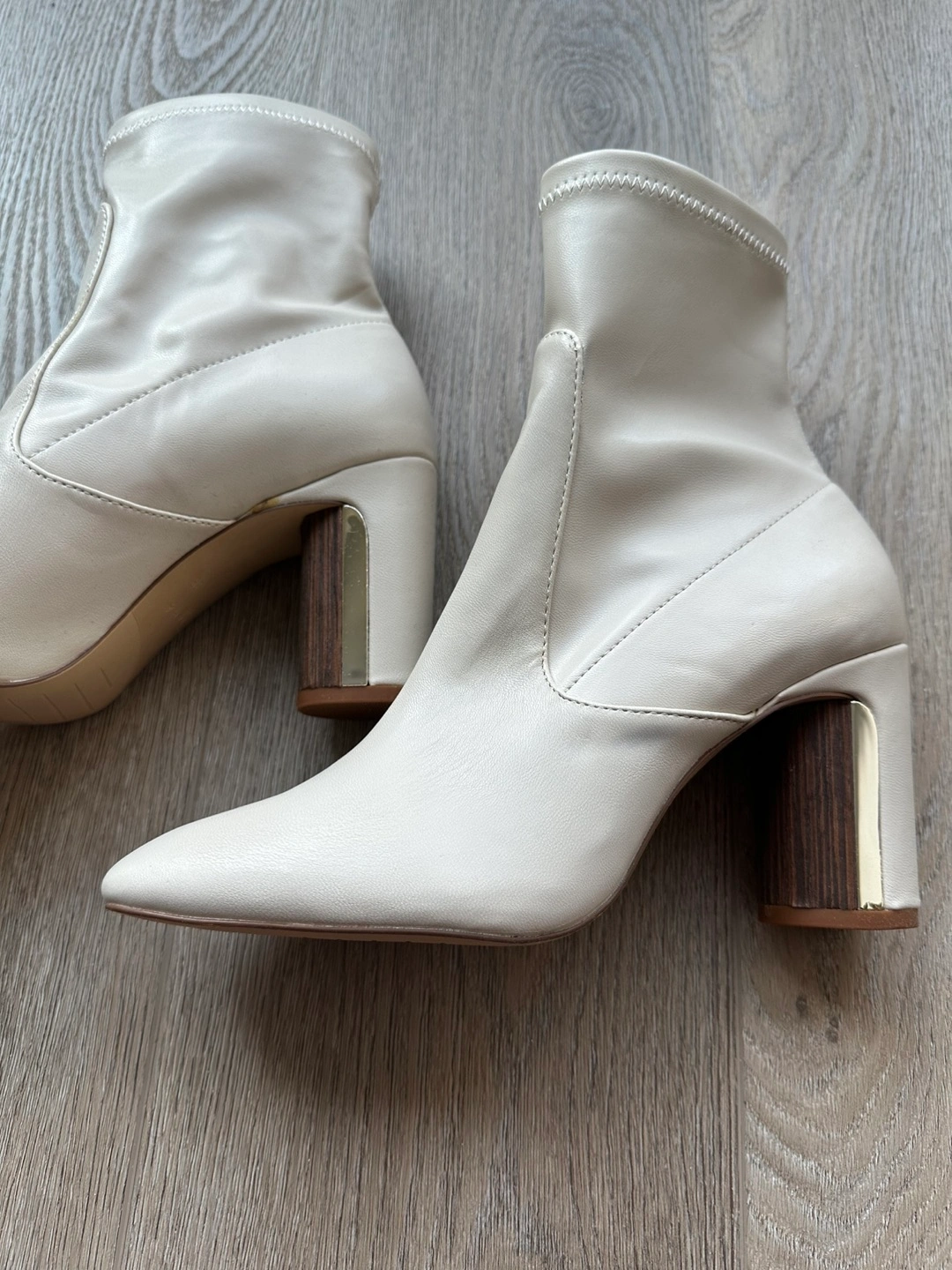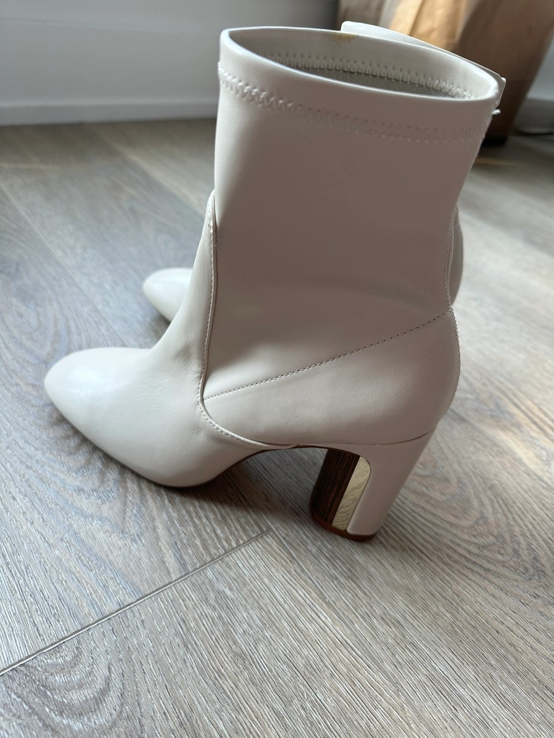 Ankle boots with rounded heels in an ivory shade from Zara. The heel height is 3.25 inches. Has a faint blue-ish mark on the left boot (see photo). Only worn once. ❗️Needs to be gone by early July! Whatever isn’t picked up by then will be donated. Feel free to browse my other listings if you’re interested! If you purchase multiple items I can provide a discount. :) Condition: Like new Brand: Zara Size: 38 / US 7.5