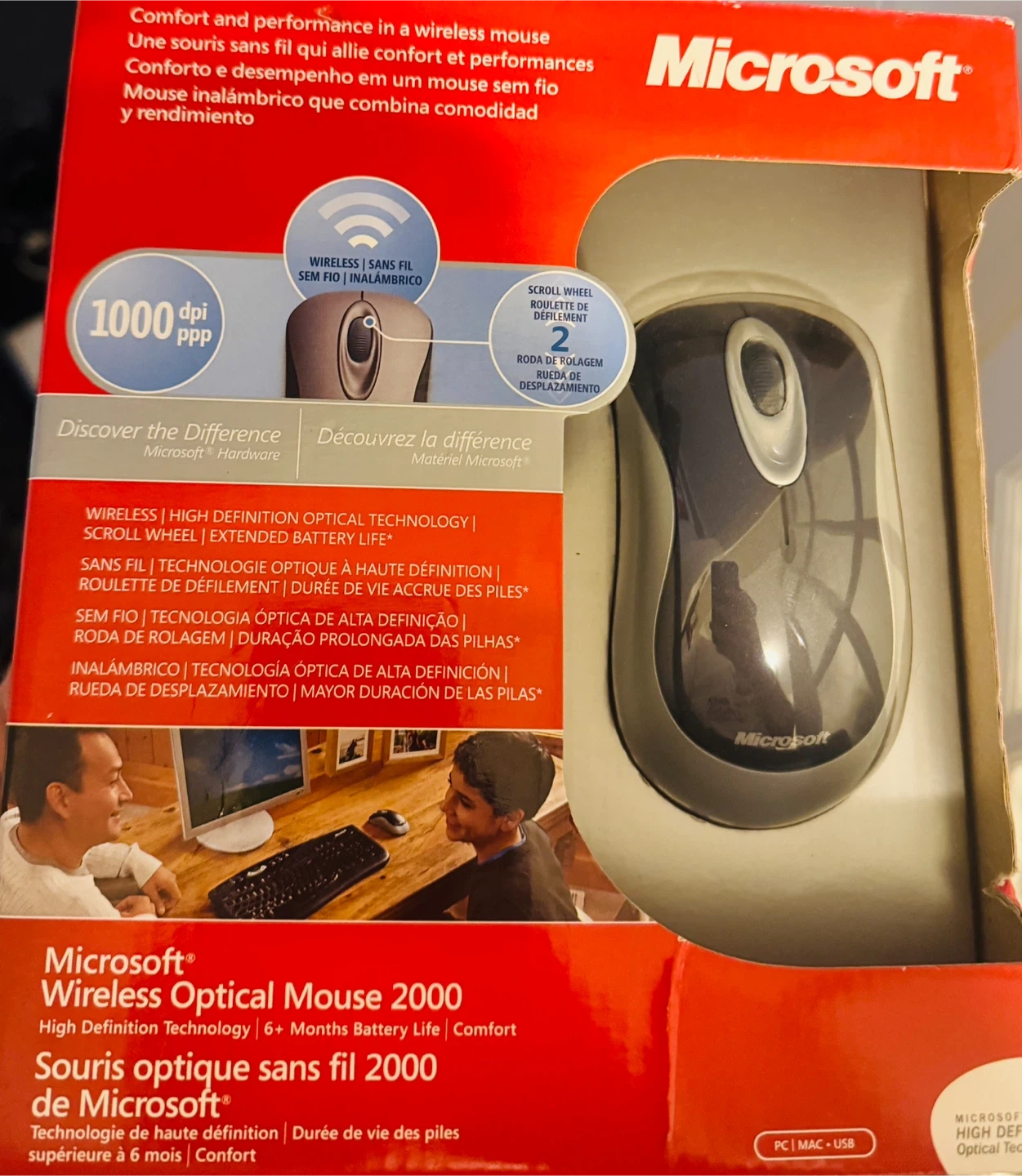 Selling a Microsoft Wireless Optical Mouse. It has high definition optical technology and extended battery life. The box is included and it's compatible with Windows and Mac