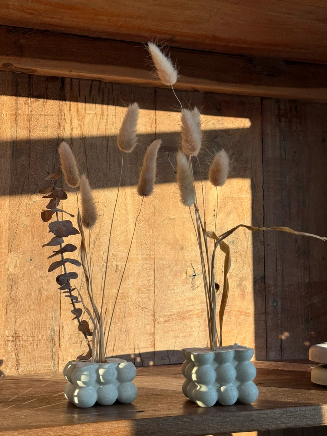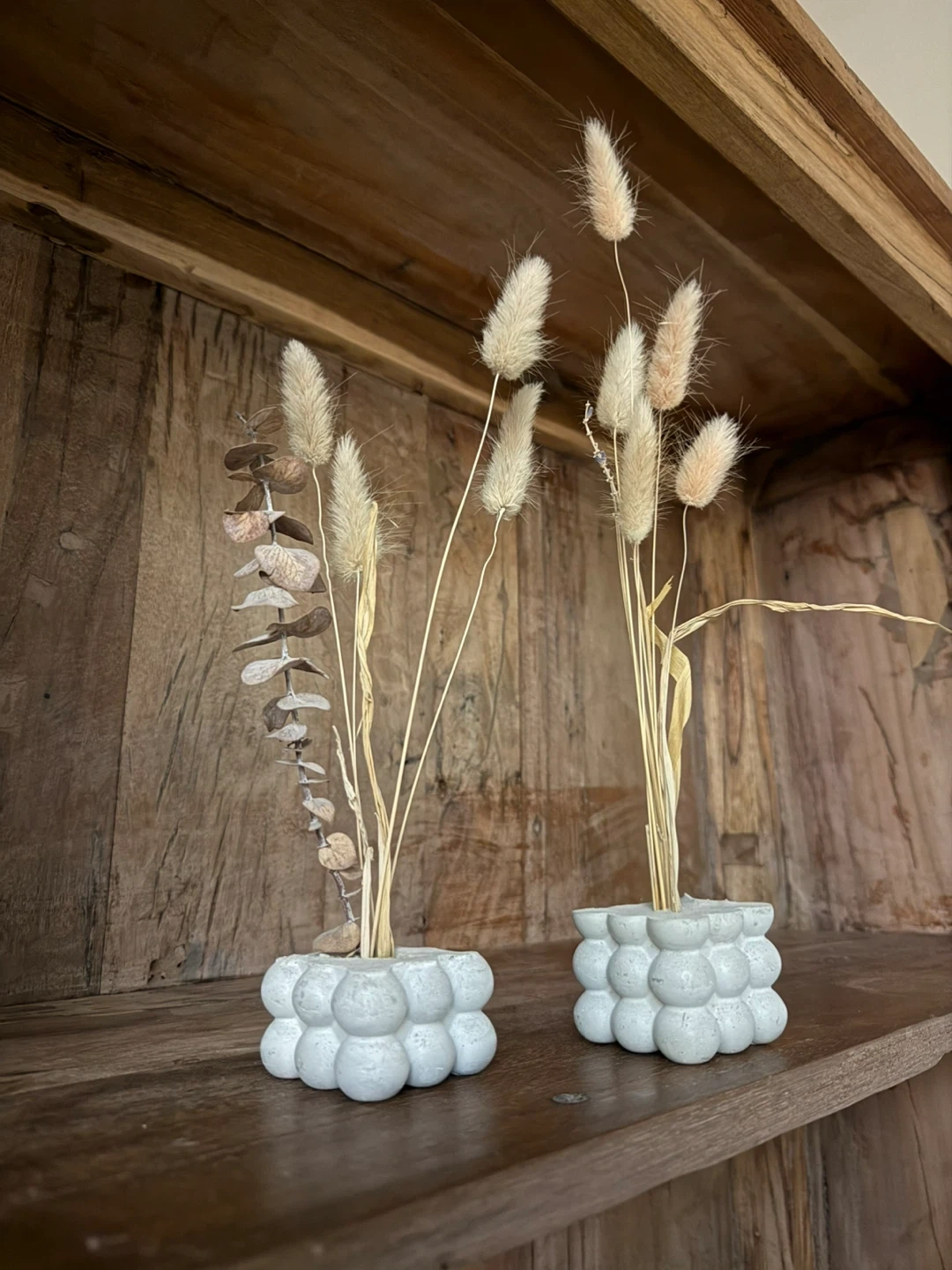 Selling these cute dried floral arrangements! They come with a unique concrete base that adds a touch of modern style to any room. Perfect for adding a bit of nature indoors without the upkeep of fresh flowers. Selling as a set. The dimensions are approximately 2.5 x 2.5 inch base, tallest high is approximately 14 inches. Condition is good