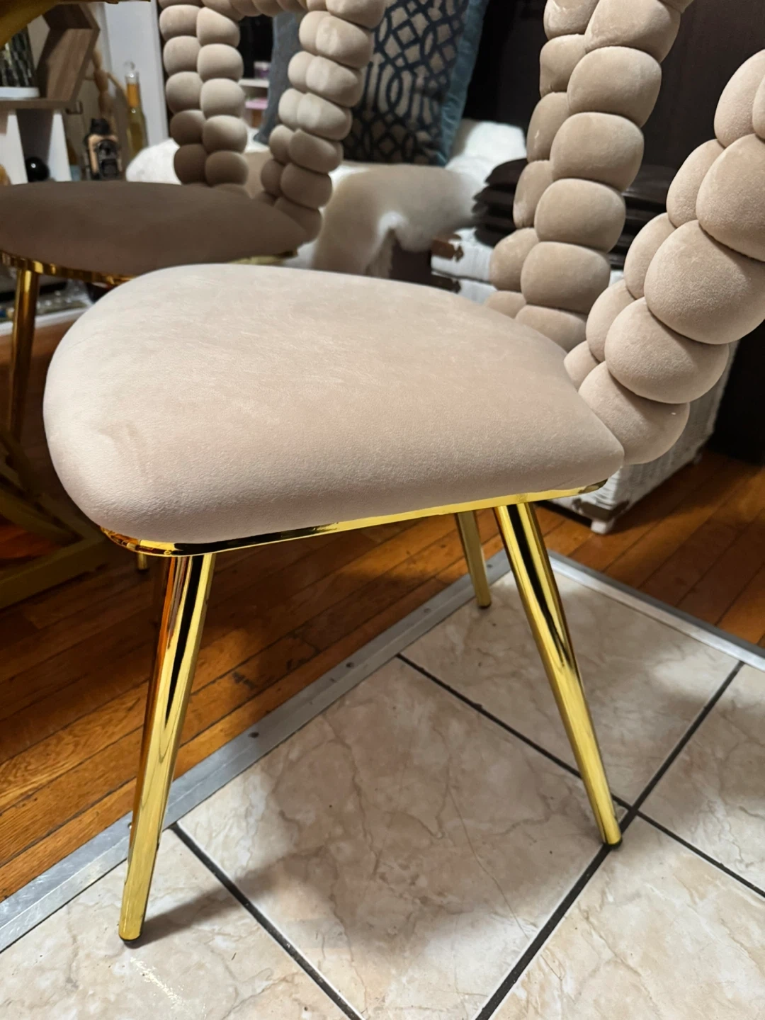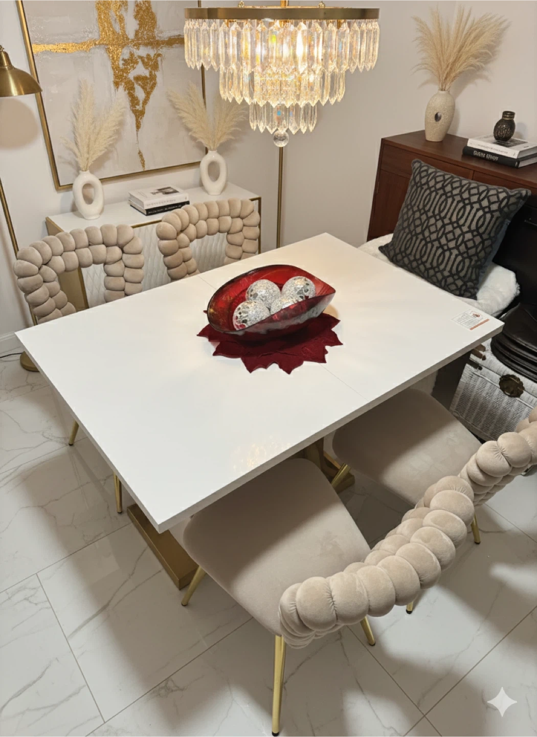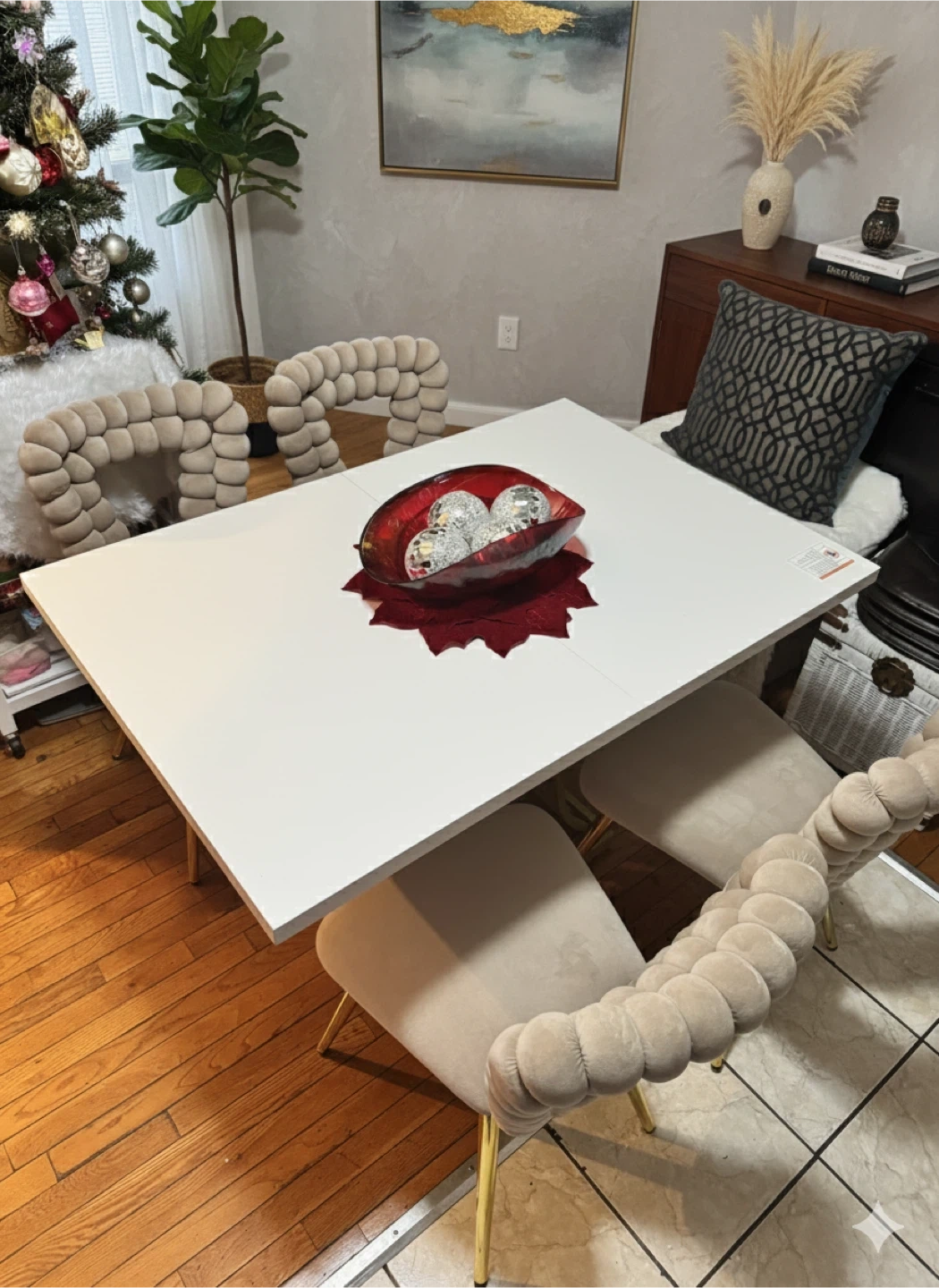 Selling a dining table with unique bubble chairs! The chairs have a stylish design with a soft, textured feel and gold legs. They'd be a great addition to any dining room. You can pay with cash or credit card. Easy to transport. Ready for pickup in Jamaica Hills 11432. Don't miss this opportunity to add an elegant and modern touch to your home.