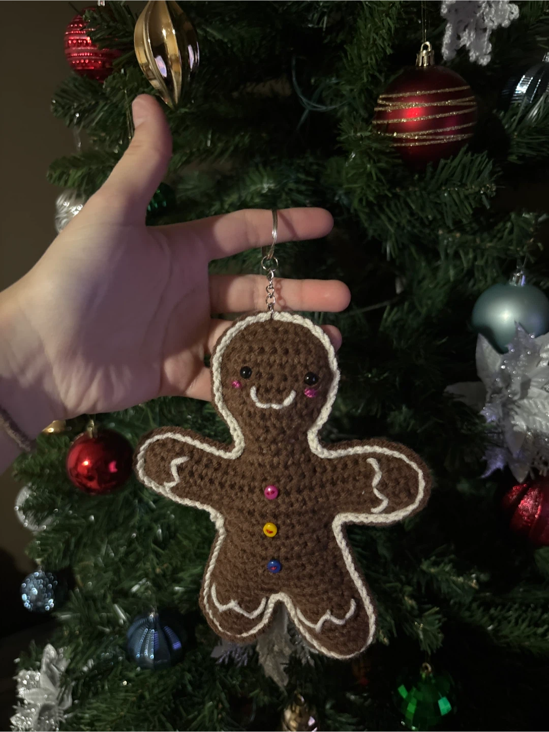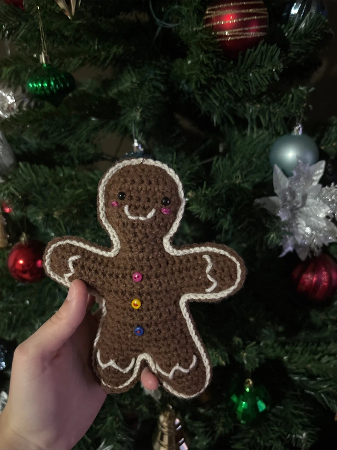 Looking to add a touch of handmade charm to your Christmas tree? I have a crocheted gingerbread man ornament for sale! It's brown with white trim and has cute little button details. It's in great condition and ready to hang!