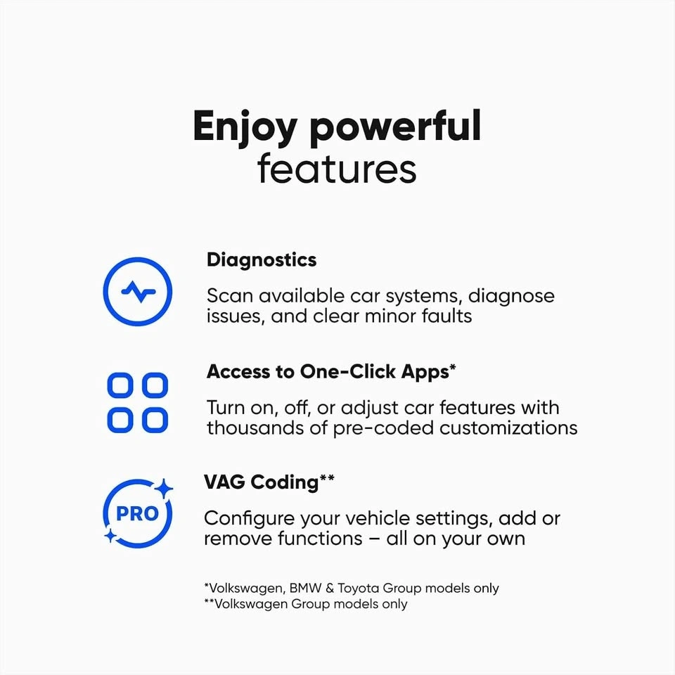 OBDeleven OBD2 Diagnostic Code Reader scan Tool, Bluetooth Scanner for Audi Seat Cupra Skoda Volkswagen BMW Mini (Android & iOS, Next Gen Pro Pack)
