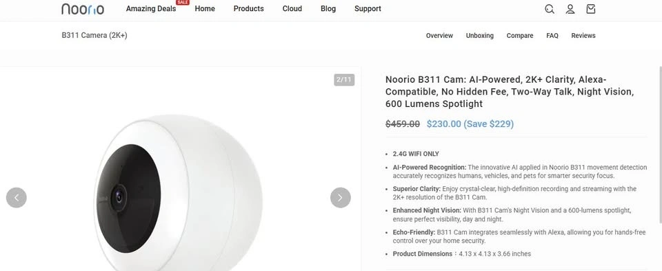 Noorio B311 Cam: AI-Powered, 2K+ Clarity, Alexa-Compatible