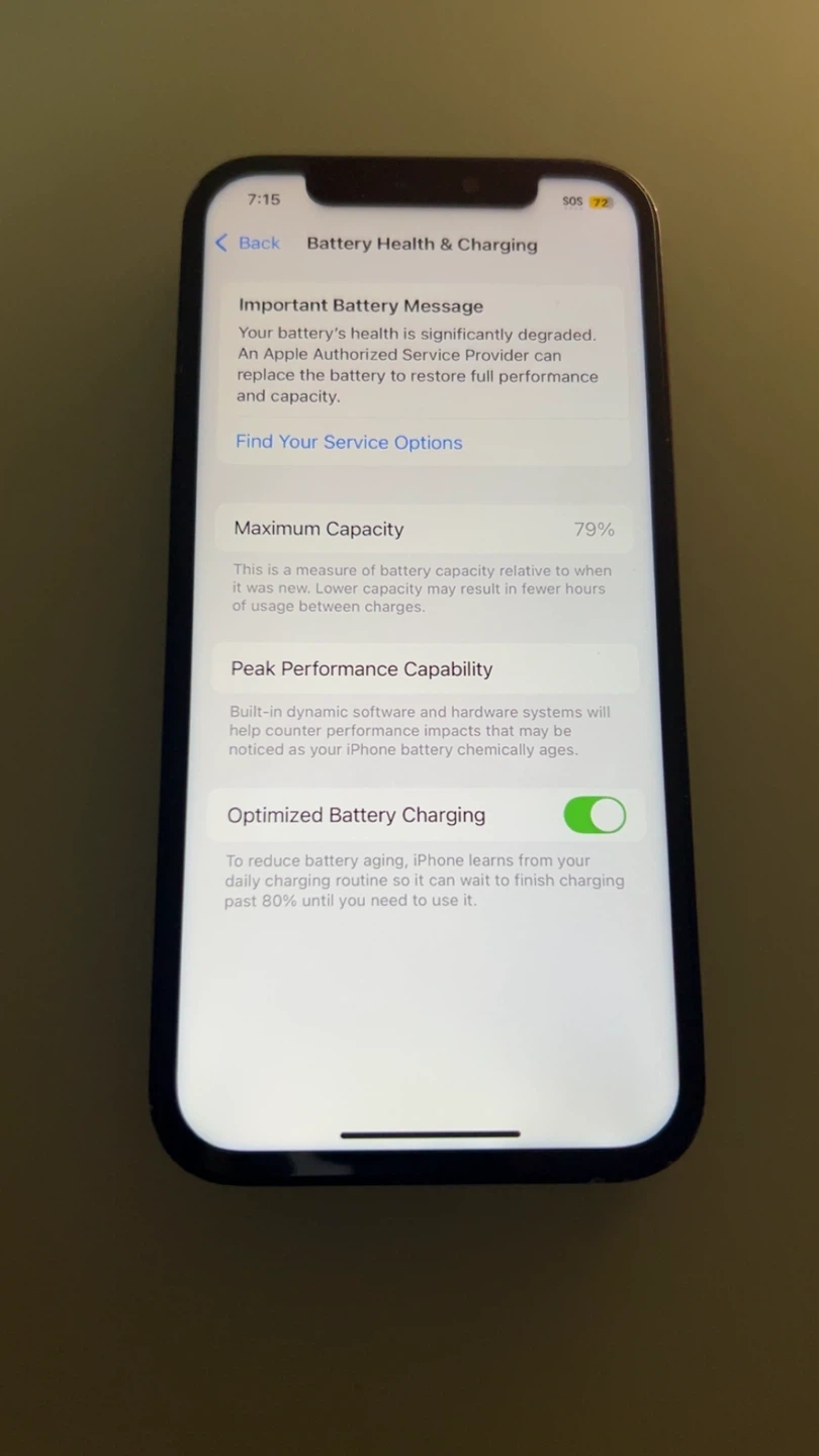Selling a used iPhone 12 in black. The battery health is at 79%.