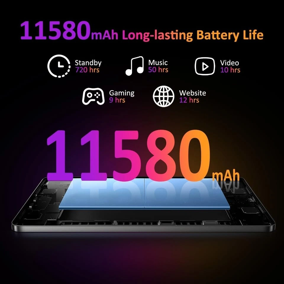 POWMUS Tablets 2024 14 inch Android 14 Tablet, 36GB RAM, 256GB Storage(Expand to 1TB), 2K Display, 8 Core CPU, 11580mAh Battery,4 Speakers, WiFi 5GHz Tablet Case-Black
