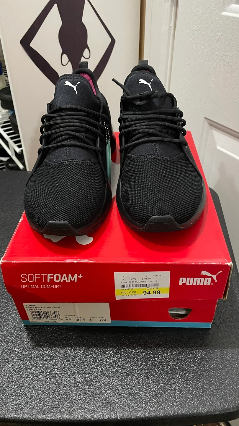These Puma Sirena women's running shoes are in great condition and come with the original box! They are a size 7 and feature SoftFoam+ for optimal comfort. The original price was $94.99 asking $25