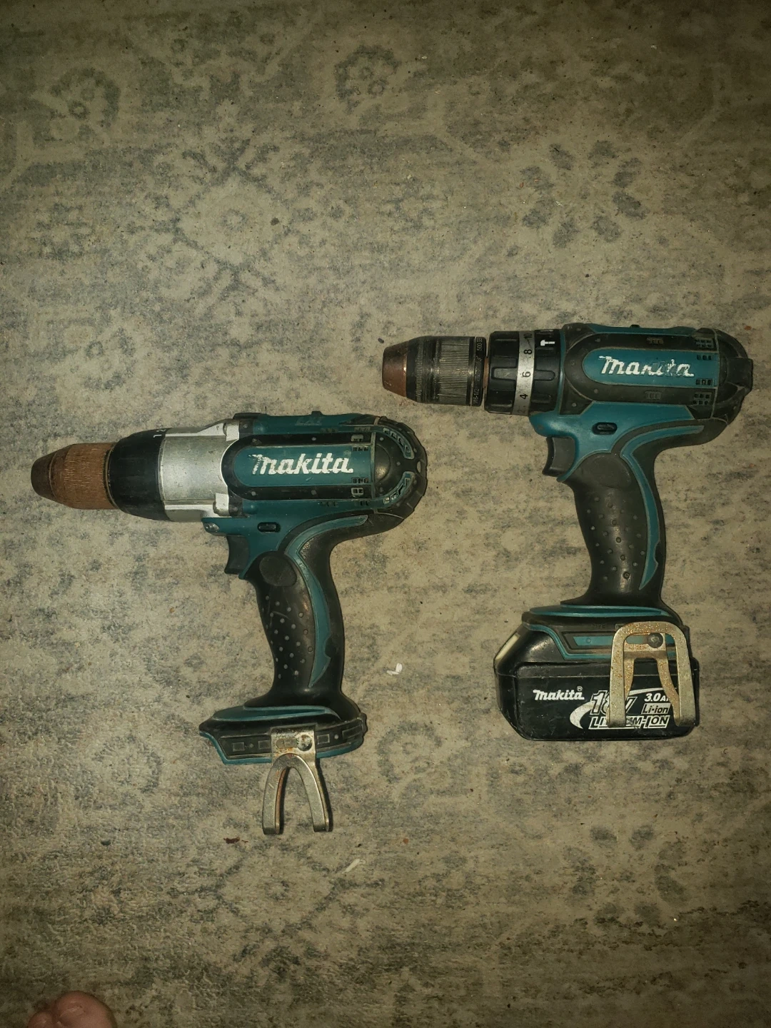 Selling a couple of used Makita cordless drills. They've been used, so they show some wear, but they're still functional. One has a 3.0 Ah 18V Lithium-Ion battery. Great for DIY projects around the house!
