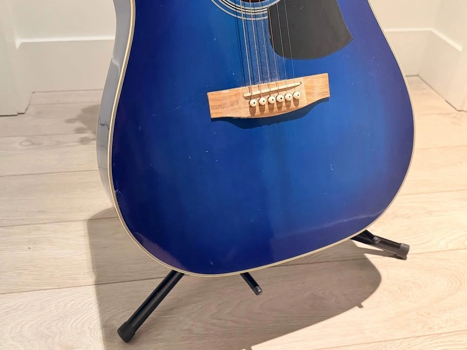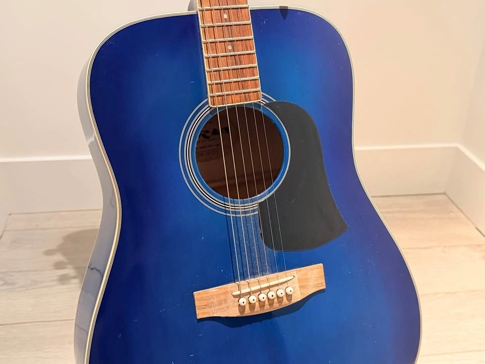 Aria AW-20 BLS steel-string acoustic guitar in blue sunburst finish.