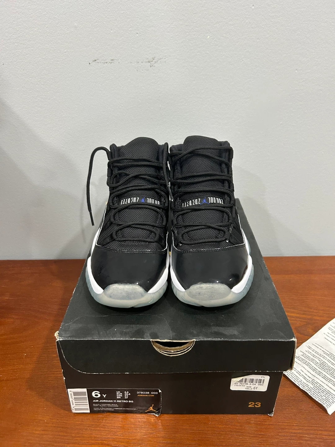 6Y GS Jordan 11 Space Jam (2016 edition). Fits like a women’s 7.5. Brand new with original box. Due to age, it’s not deadstock condition but still brand new and a grail item. Original receipt available if requested. Stockx price indicates over $500 for a new pair of these.