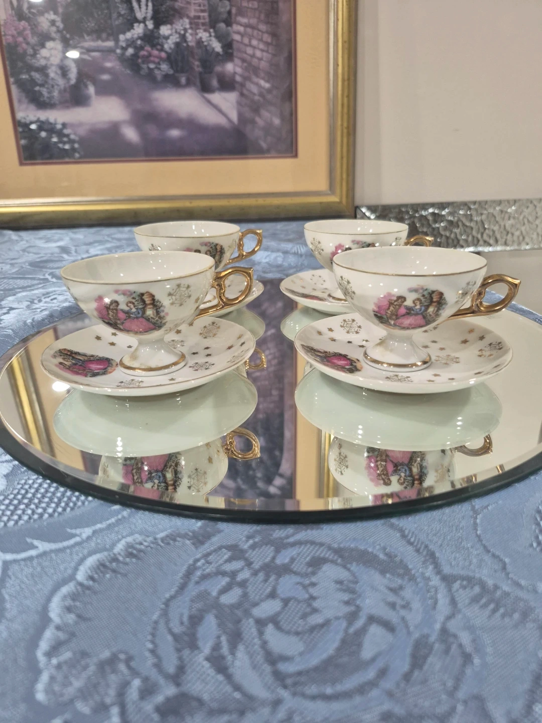 Vintage Footed Tea set of 4 fine porcelain from Japan