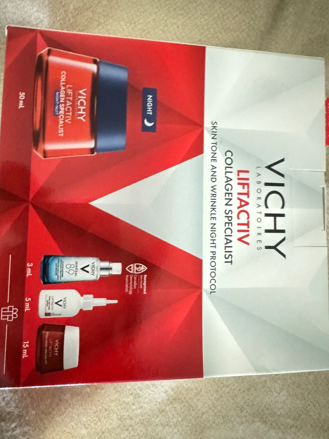 Selling a Vichy LiftActiv Collagen Specialist Skin Tone and Wrinkle Night Protocol set! It includes: