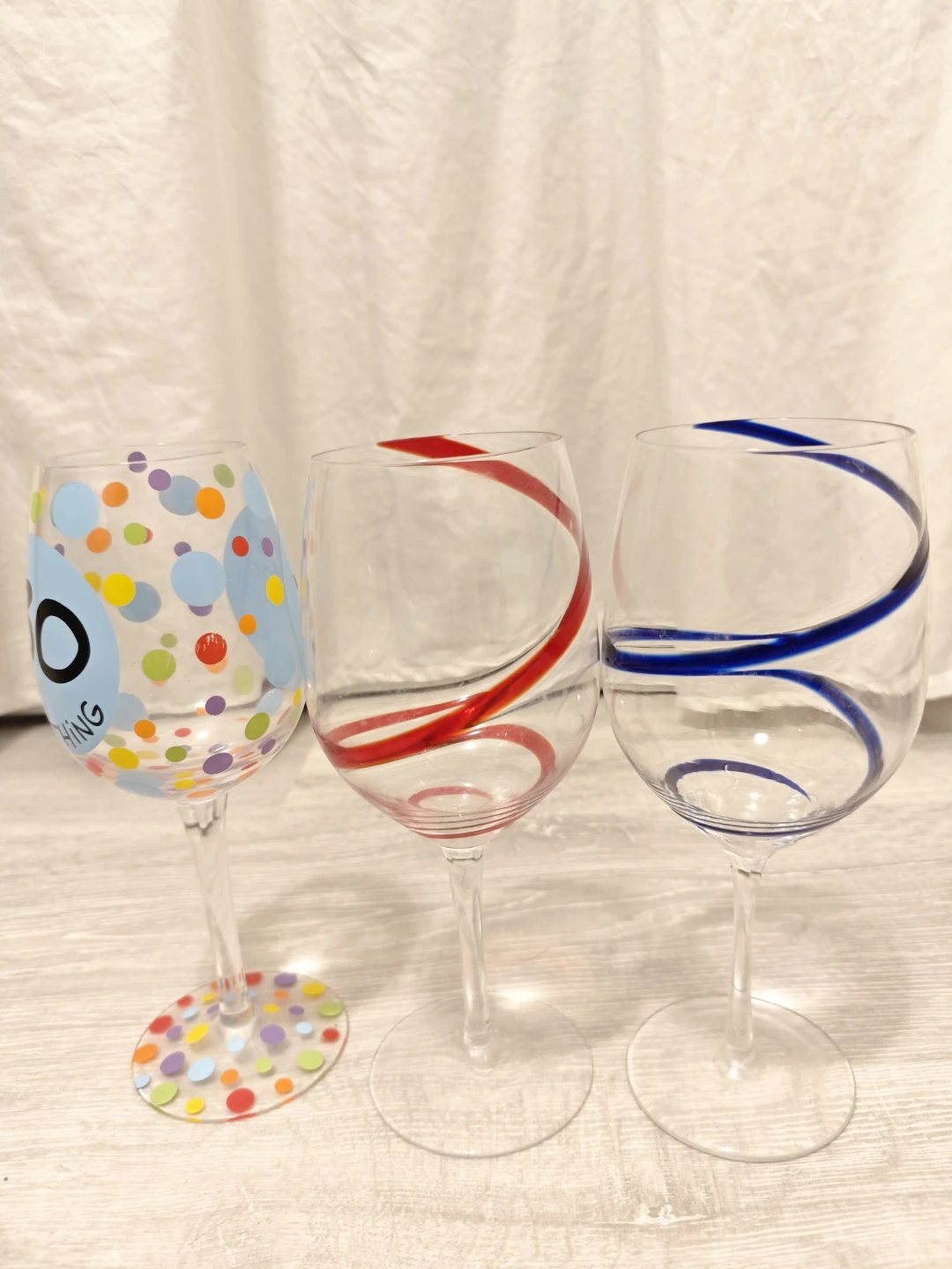 The other three wine glasses in good condition as shown in photo are free with purchase.