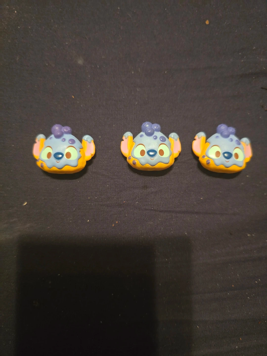 Here are some adorable Disney Stitch blueberry scones munching figure ×3 $10.00 each They're in great condition and ready to add some Disney magic to your collection or outfit