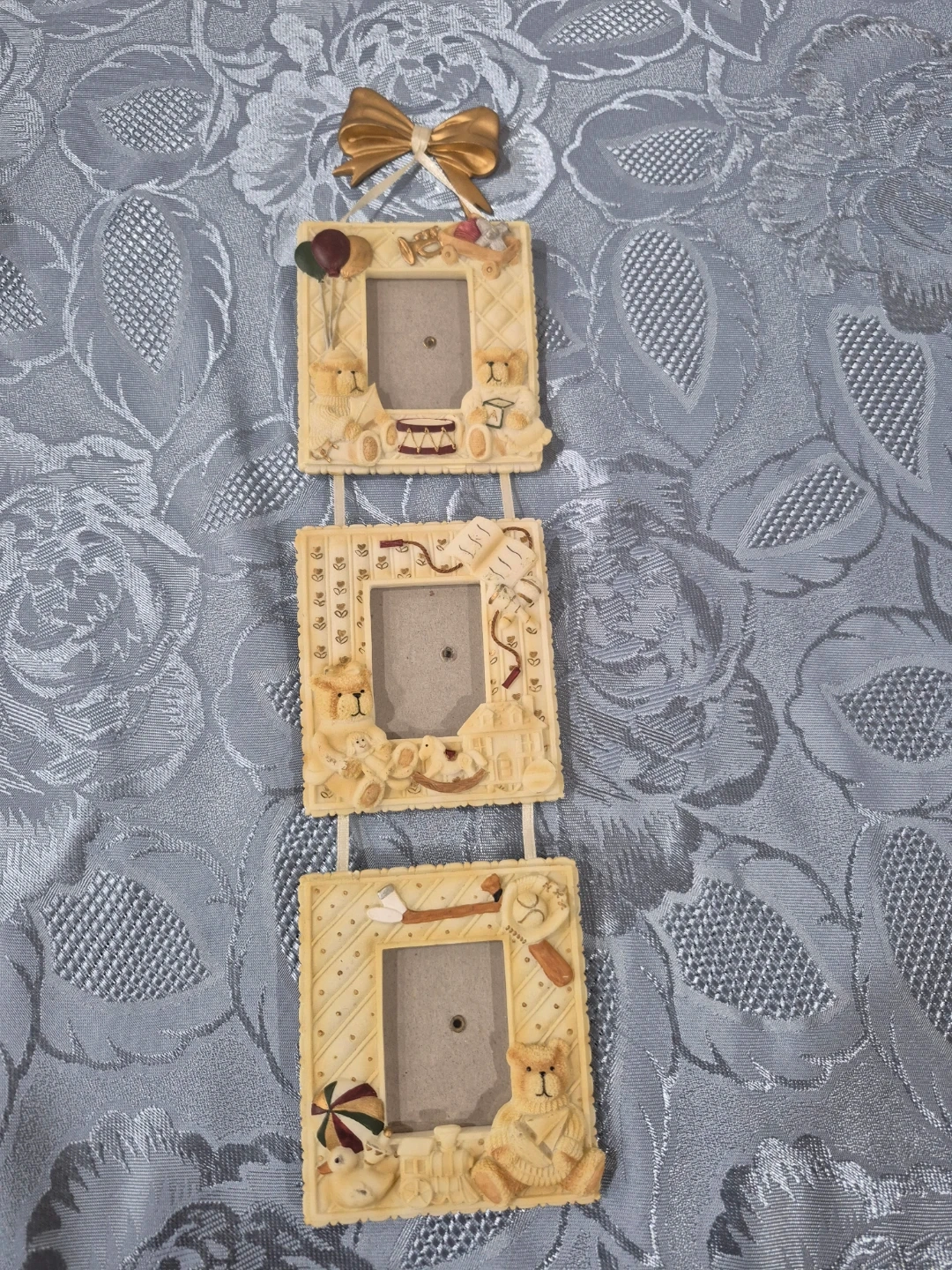 Here's a cute hanging picture frame with three slots! It's in great shape and ready to display your favourite memories