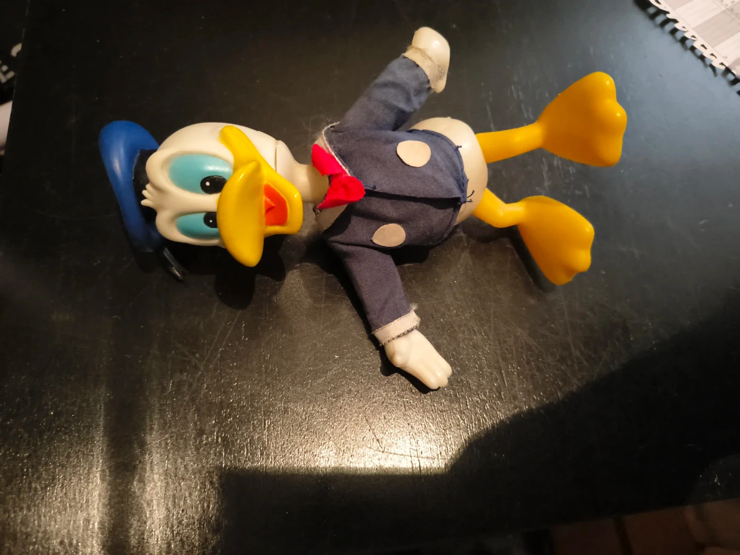 Donald is in very good preowned condition, especially for his age. His body parts are moveable and he stands approximately 5 1/2 inches tall. Please see pictures for details.