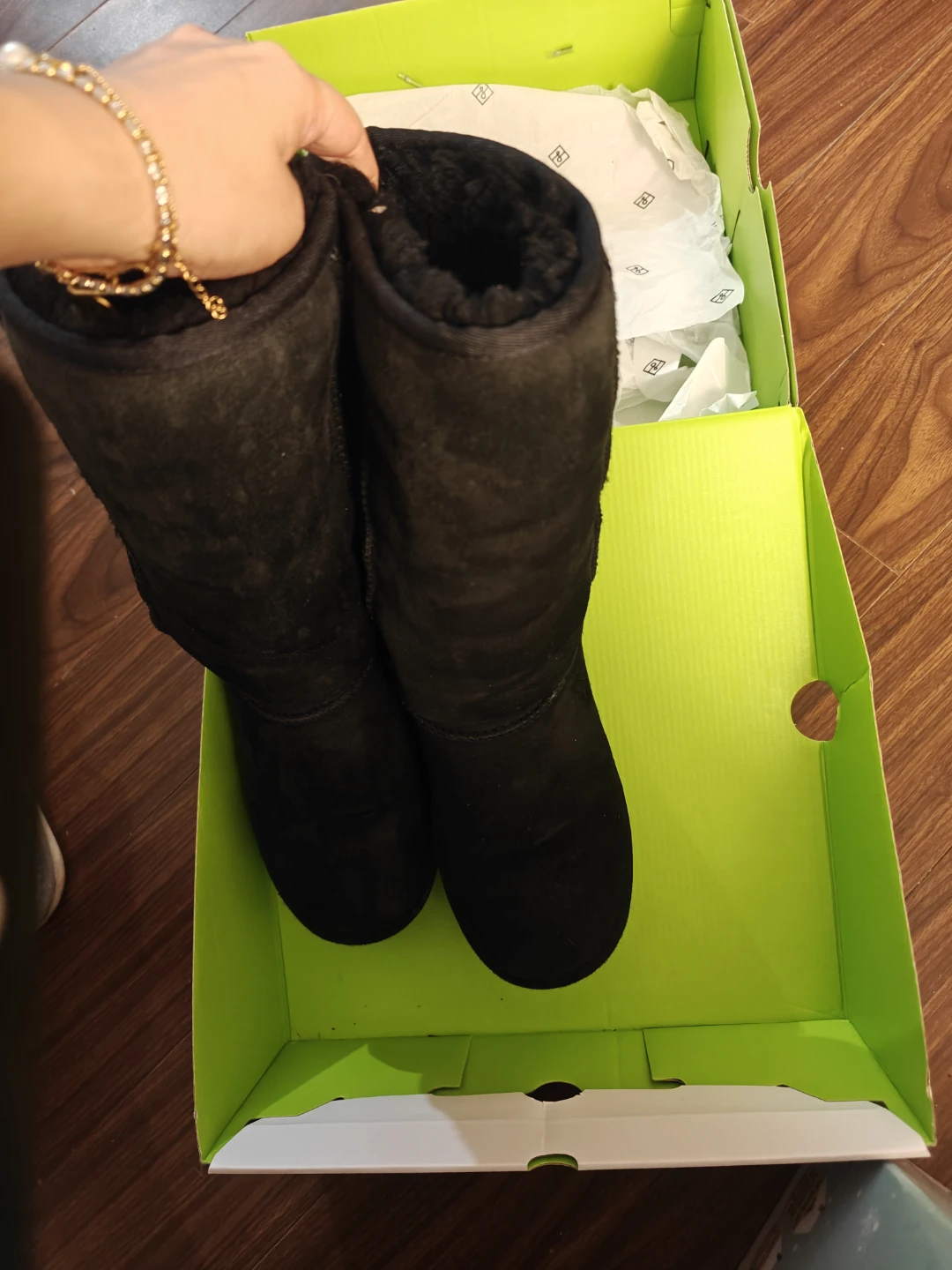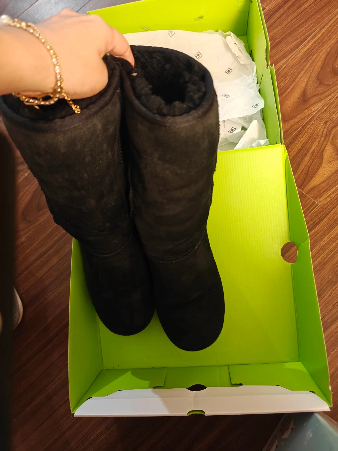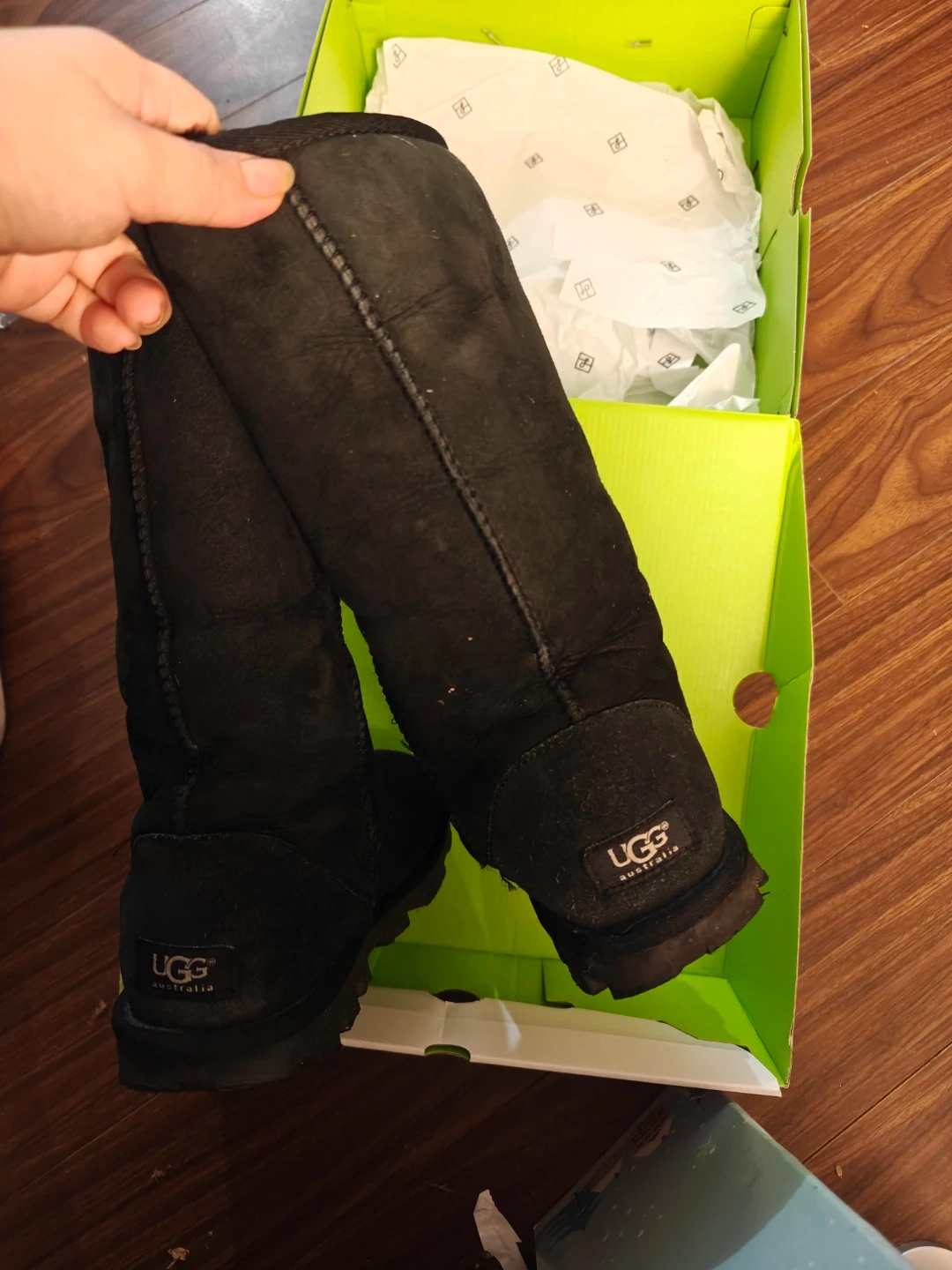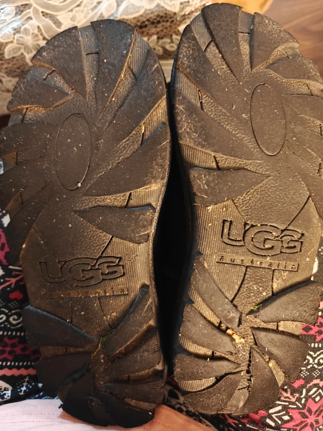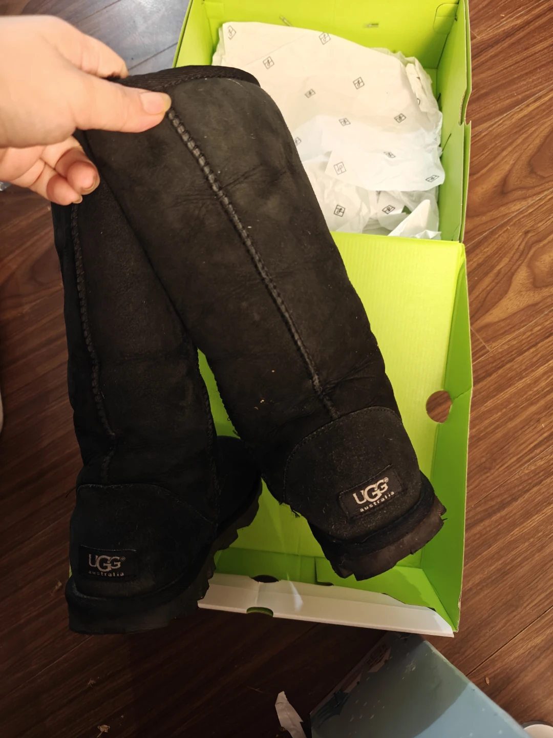 Selling a pair of UGG Australia boots in black. They are a size 7. The boots come with the box