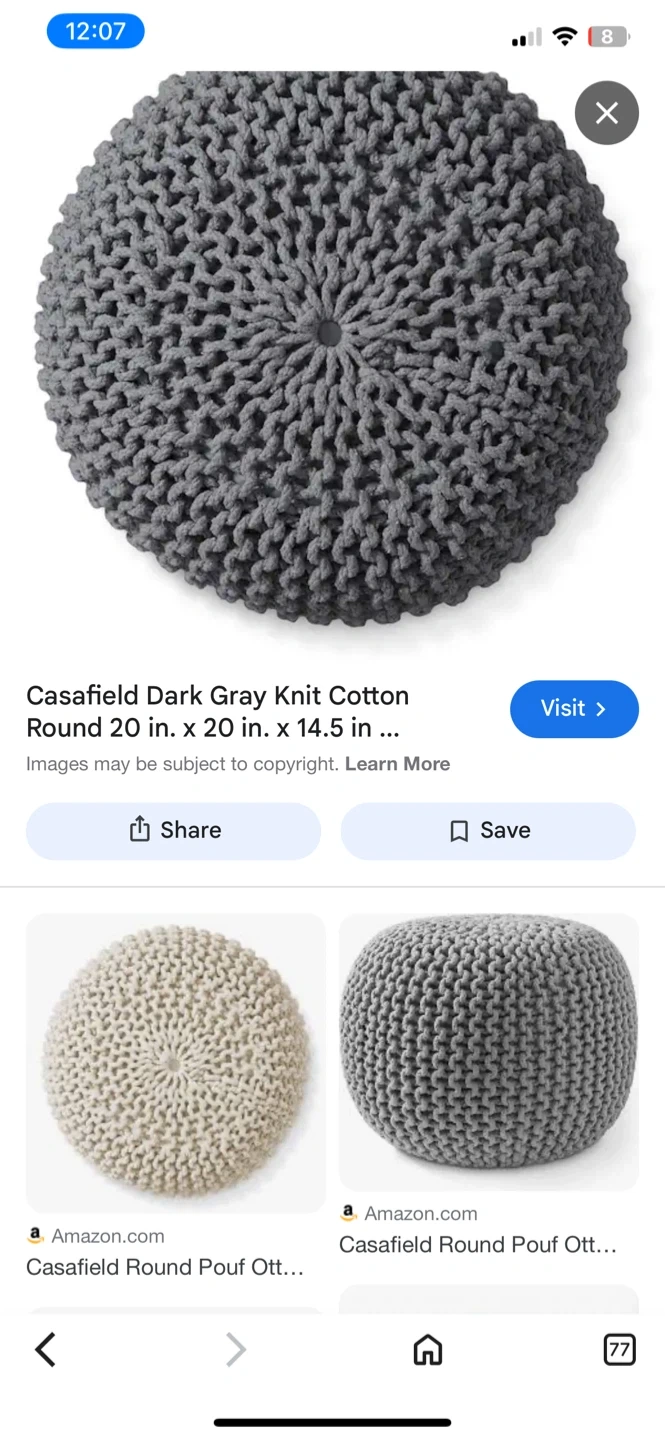 Selling a Casafield dark gray knit cotton round pouf! It measures 20 inches in diameter and 14.5 inches in height. Great for adding a cozy touch to any room