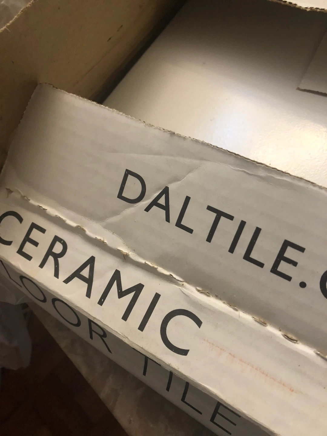 Up for grabs, a partial box of ceramic floor tiles (4) pieces to be exact, in Glacier White. They are 12x12 HD.
