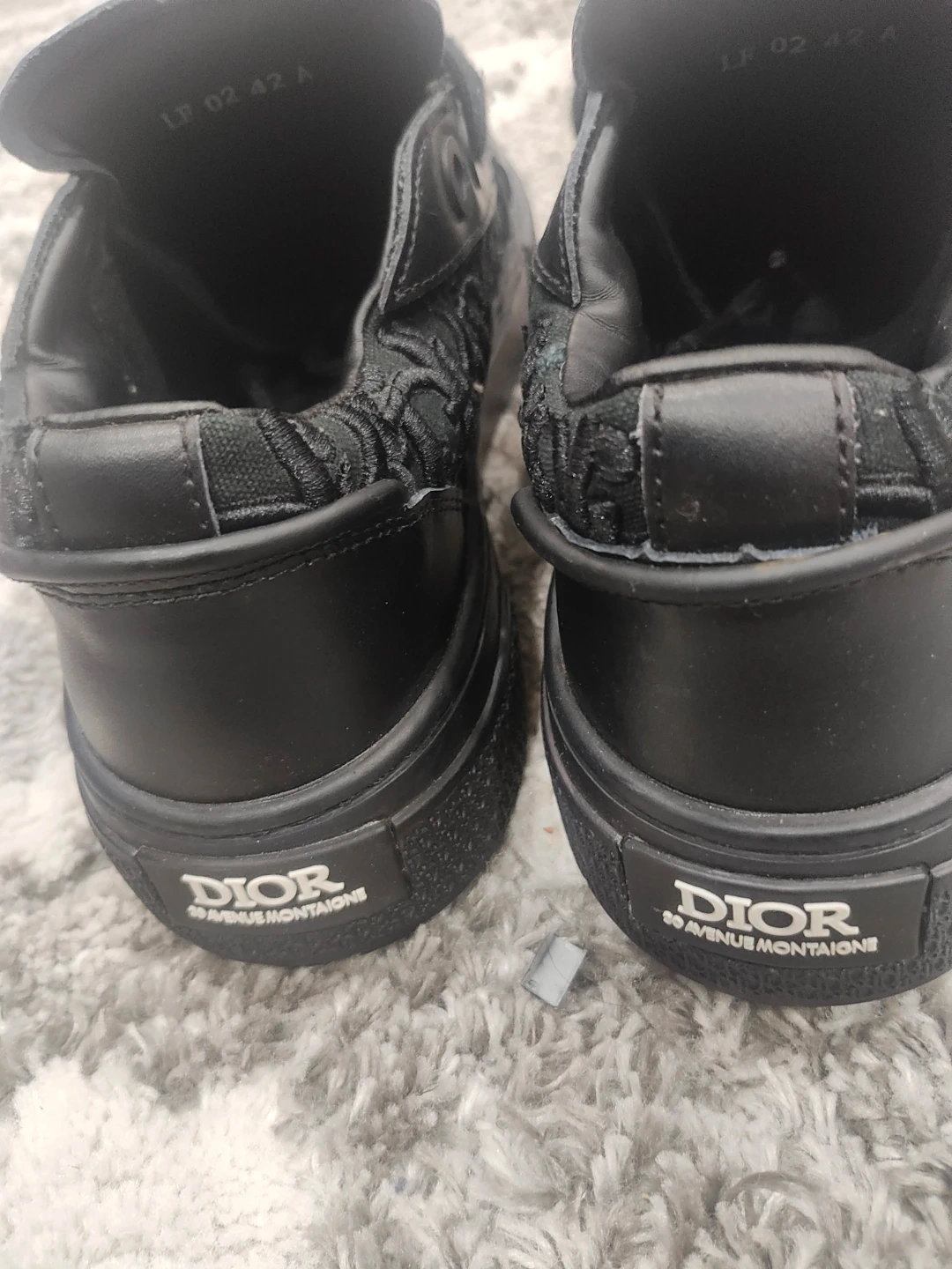 Selling a pair of Dior 30 Avenue Montaigne sneakers in black. They are in used condition, with some visible wear, as shown in the photos. The size is 42.