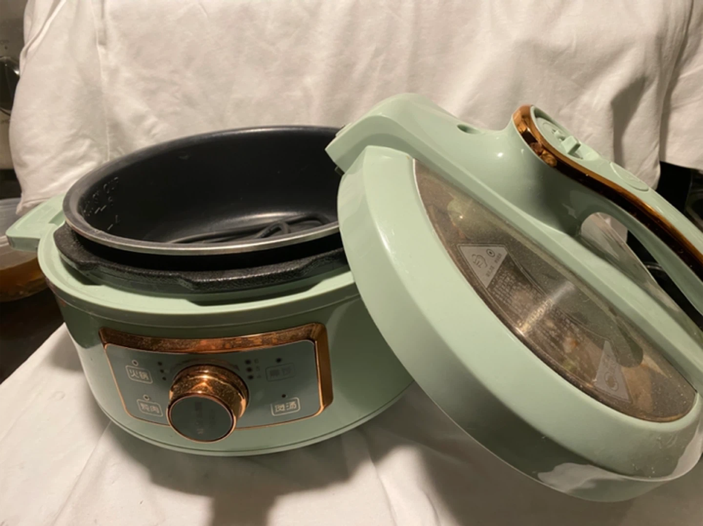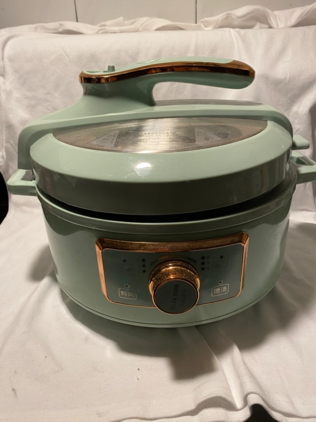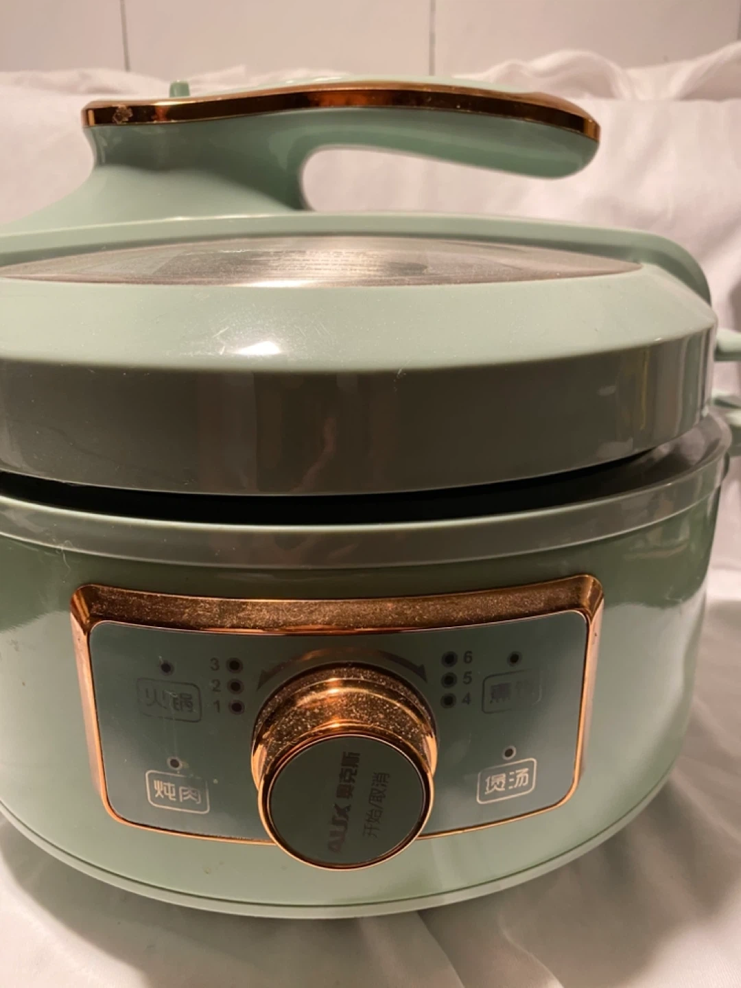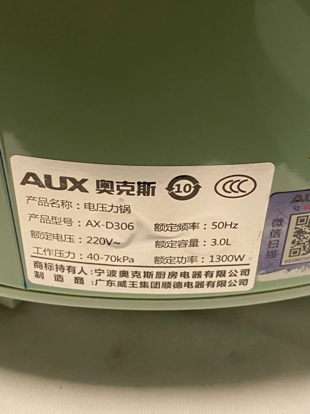 Selling a used AUX electric pressure cooker in a lovely mint green colour. It's a 3.0L capacity and operates at 220V. Model number is AX-D306. Great for quick and easy meal prep!