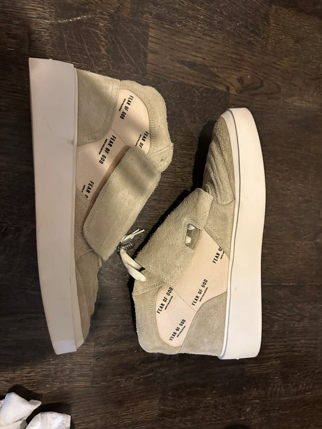 Selling a pair of Fear of God Skate Mid Sneakers in size EU 43. The colour is Sand & FOG Print. Comes with the box!