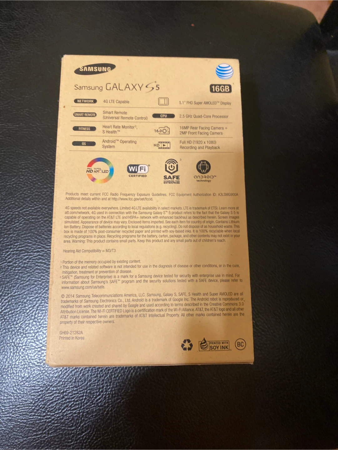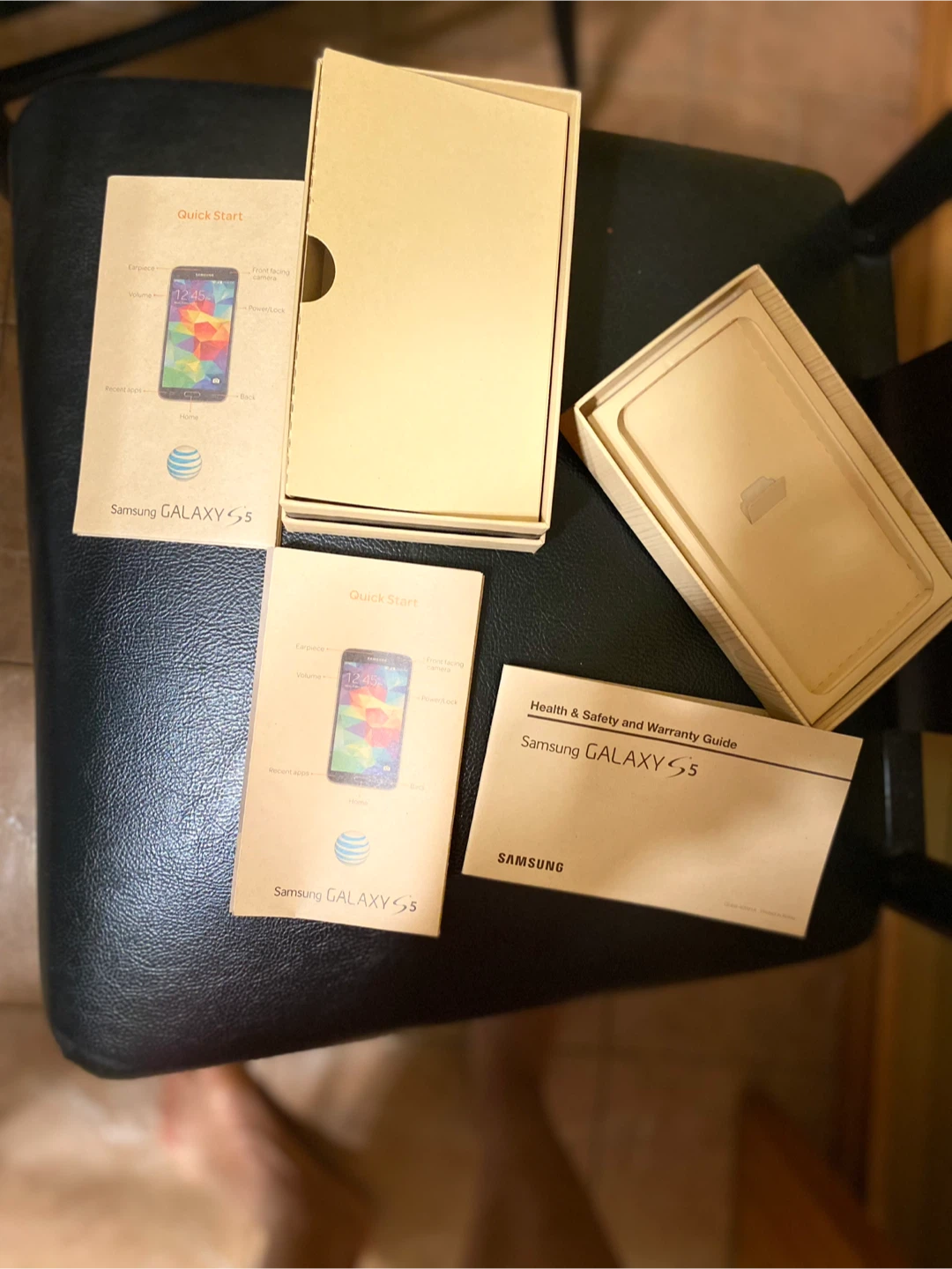 Selling original BOX from Samsung Galaxy S5 in black for AT&T. It's the 16GB model and comes with the original box and quick start guides. The model number is SM-G900A