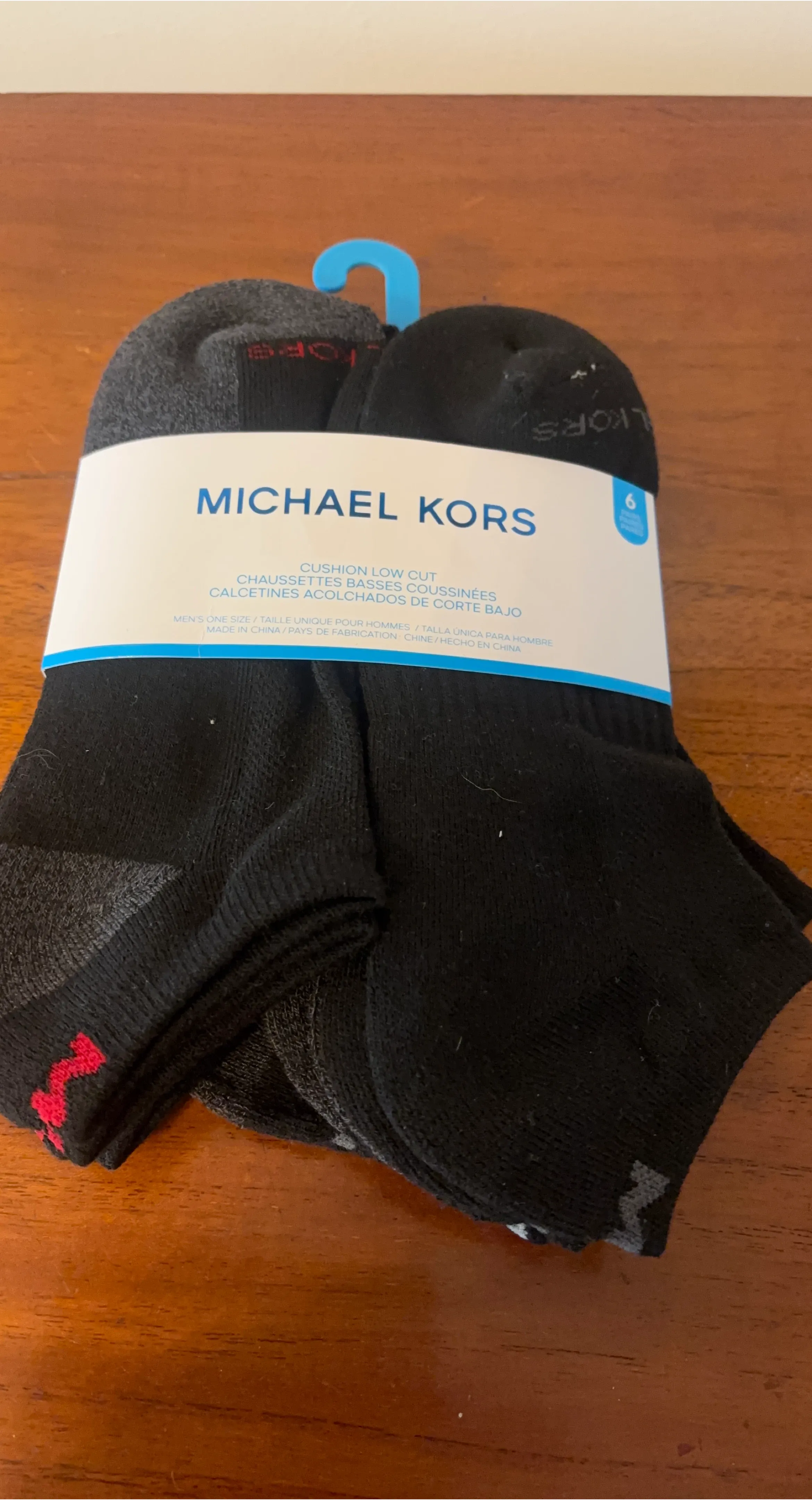 Selling a pack of Michael Kors cushion low cut socks. This pack includes 6 pairs of socks, perfect for everyday wear! They are men's one size fittings.The socks are made of 97% polyester and 3% spandex.