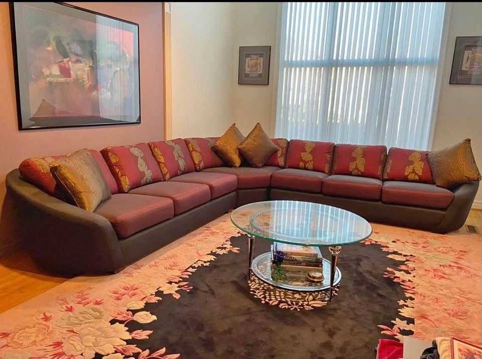 Silk three-piece sectional sofa in very good condition. Lightweight, comfortable, and easy to clean. All cushions are included. Sofa is quite large/spacious and seats 8-10 people for entertaining. Cash and pickup only please.