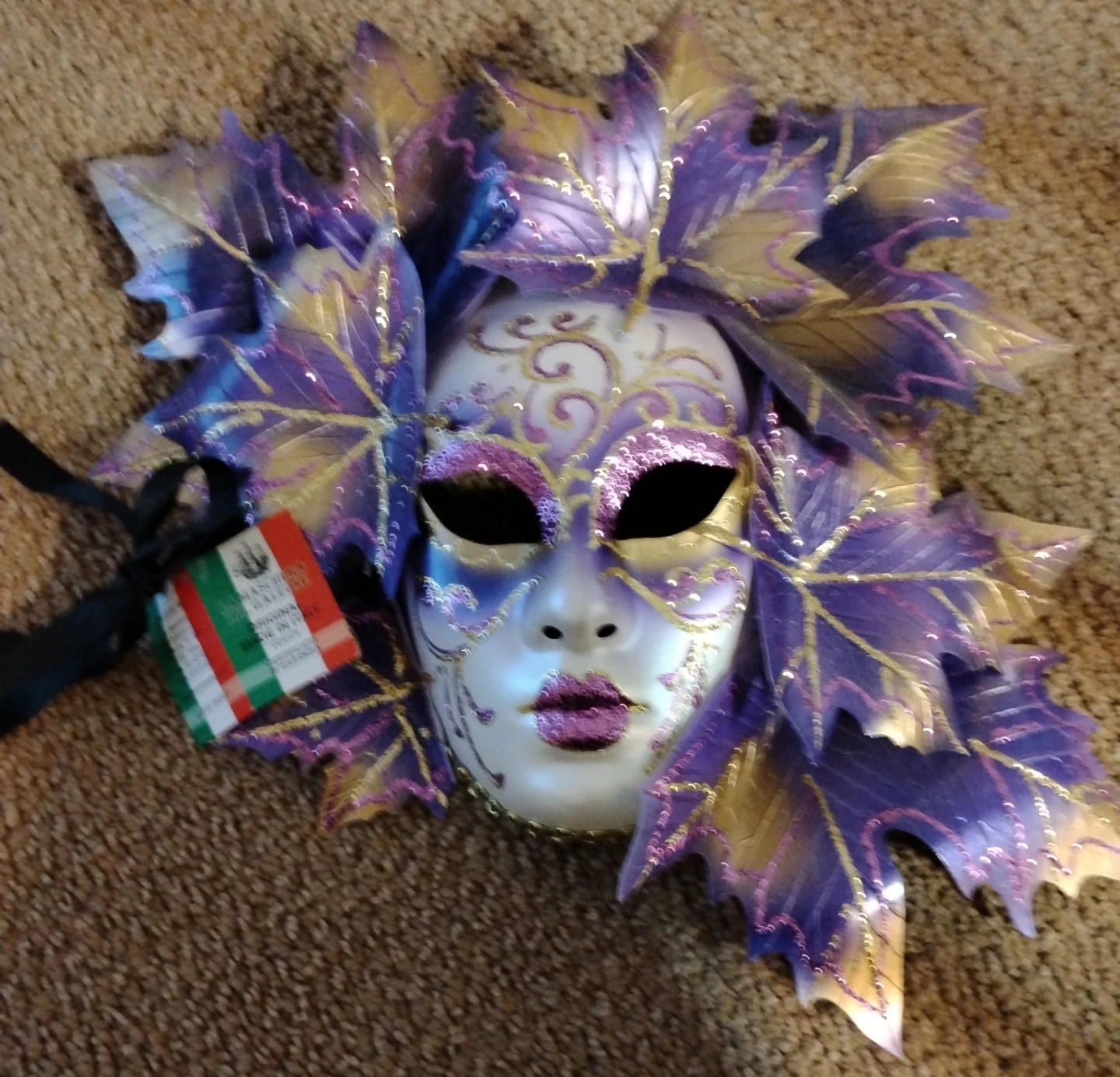 Selling a beautiful Venetian mask from La Maschera del Galeone. It's in great condition and features intricate details and vibrant colours. Perfect for a masquerade ball or as a unique piece of decor!