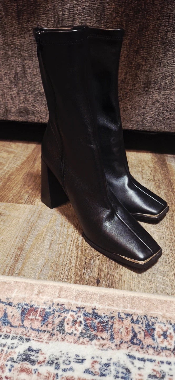 Black Ankle Boots, Size 8 REAL CAF LEATHER