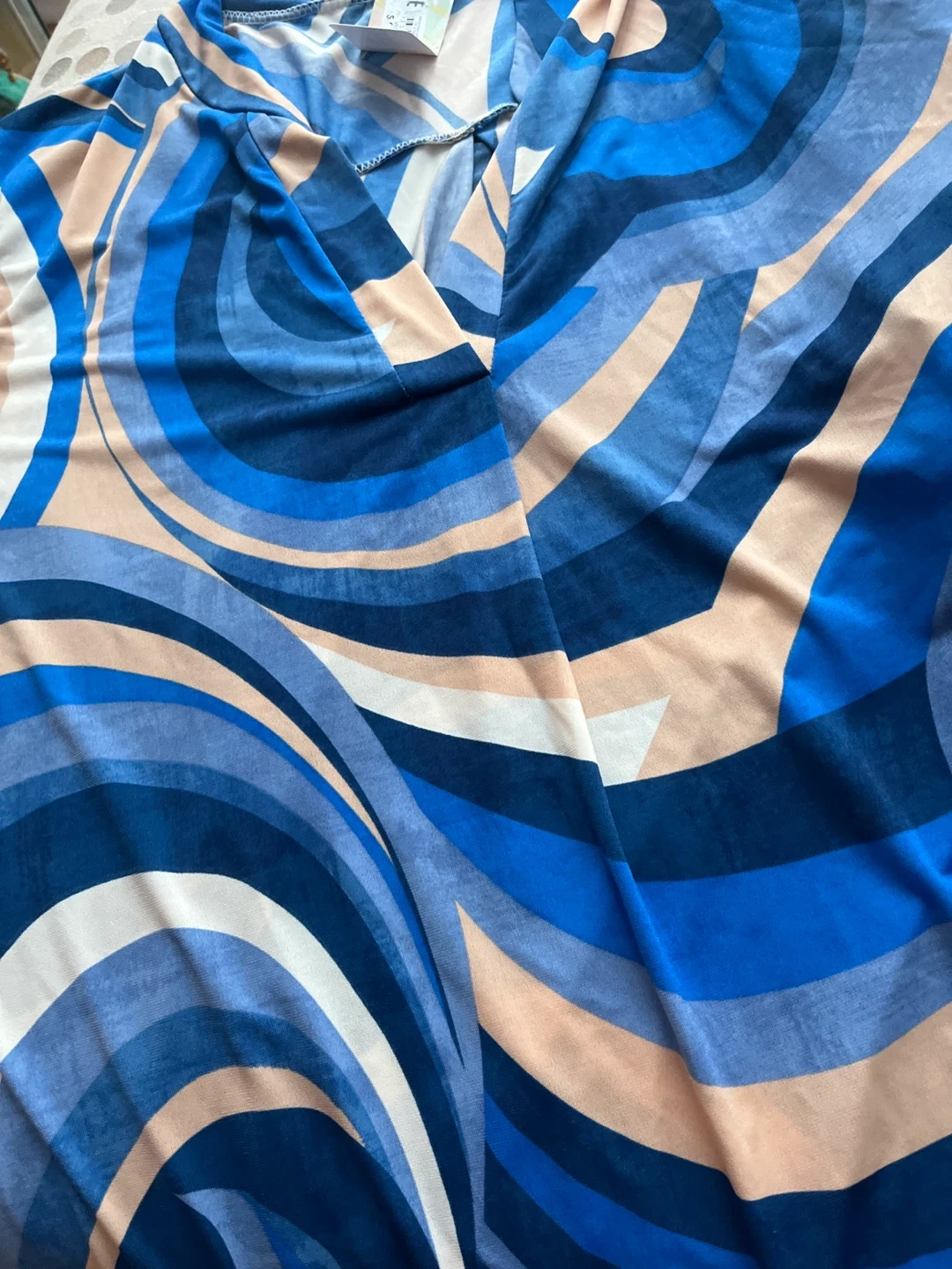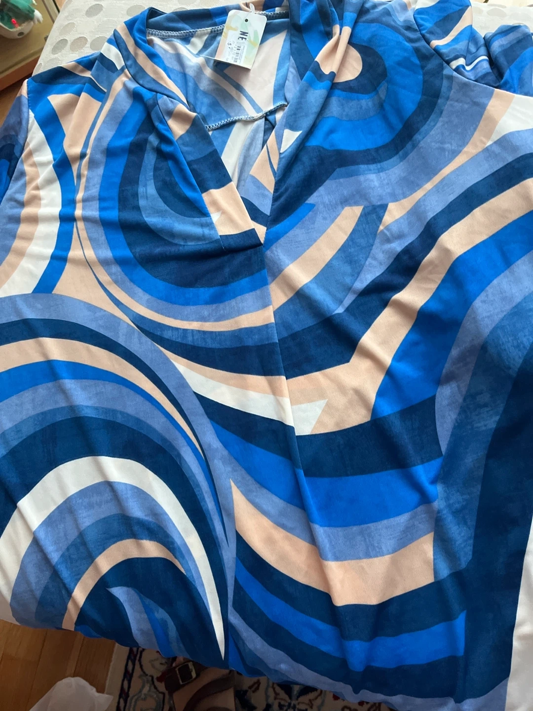 Here's a fun and vibrant blouse from WE! It features a cool blue patterned design that's sure to make a statement. It's in great condition and ready for a new wardrobe